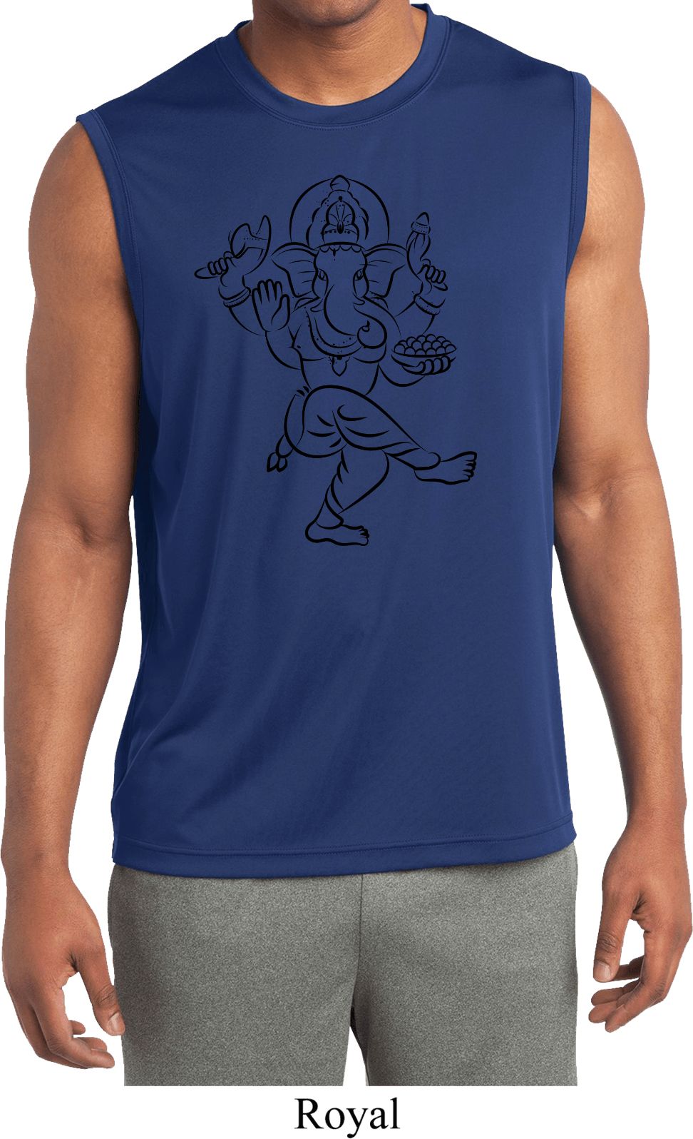 | | Mens Yoga Tee Black Sketch Ganesha Dry Wicking Sleeveless ShirtA mens dry wicking muscle shirt featuring a funny sketch of the wise Ganesha. Our mens sleeveless shirt is made of 100% polyester. Available in sizes Small through 4XL. Machine wash cold with like colors; dry low heat. ![]() |