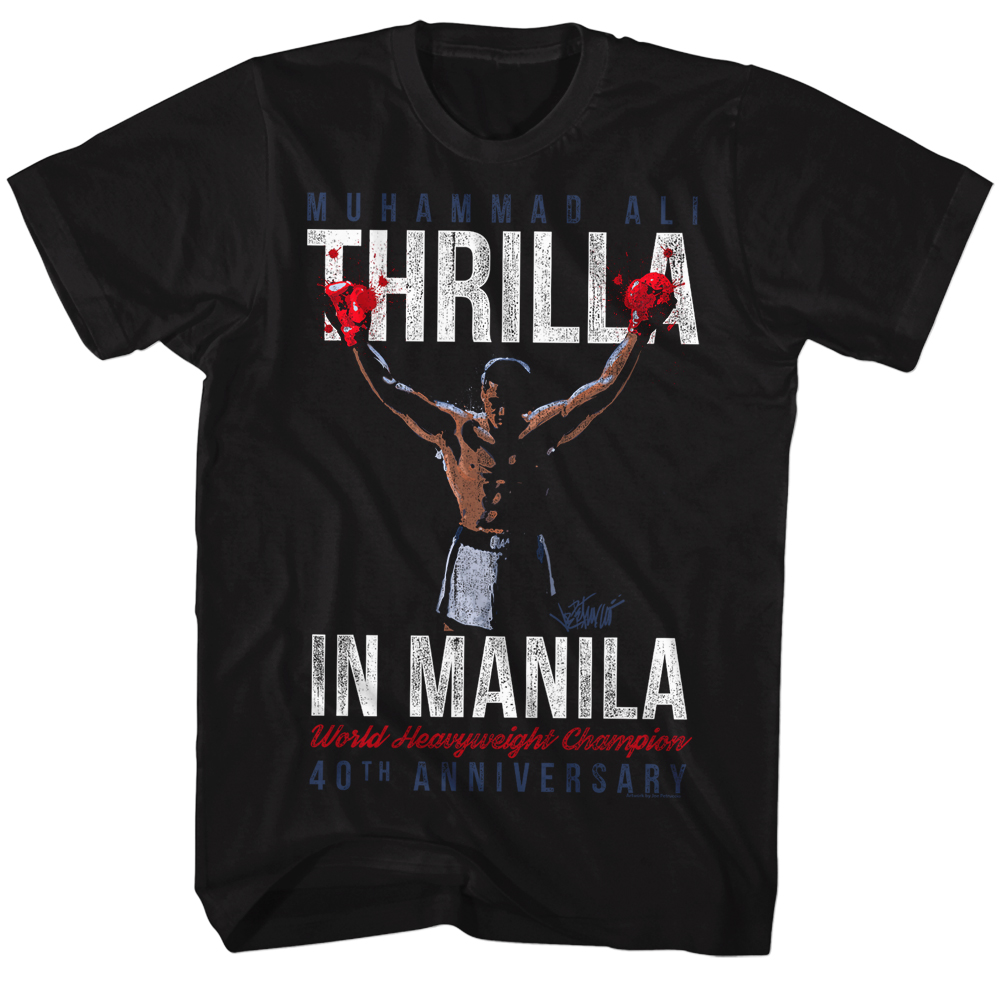| | Muhammad Ali Shirt Thrilla In Manila Black T-ShirtPaying homage to one of boxing's single greatest fights of all time, the Thrilla in Manila, which took place in 1975. Celebrate the historic battle between Ali and Frazier with this special edition Thrilla in Manila tribute tee. Celebrate the Greatest of All Time, Muhammad Ali, with this cool mens tee shirt 100% Cotton Also available in Big and TALL sizes! Officially licensed ![]() |
