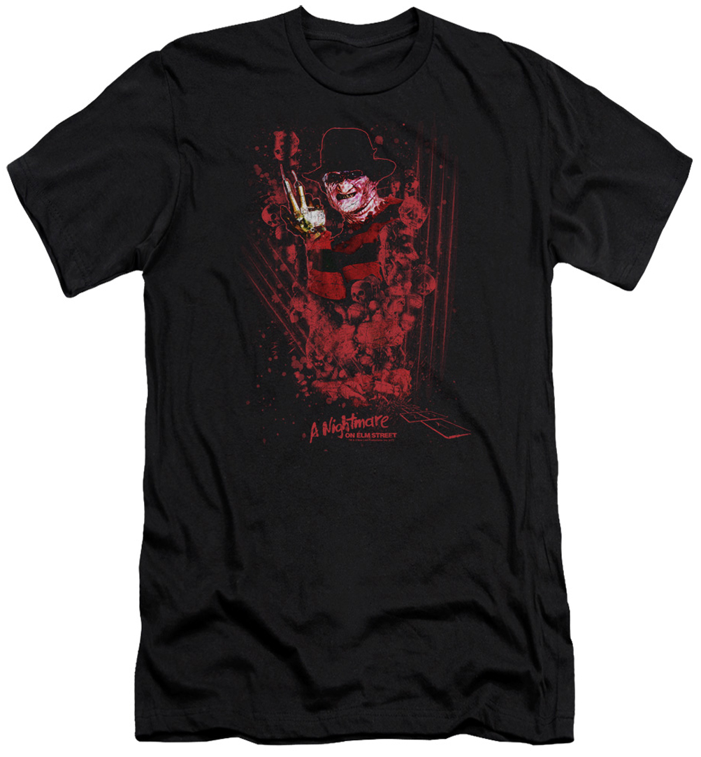 | | Nightmare On Elm Street Slim Fit Shirt One Two Freddys Coming For You Black T-ShirtNightmare On Elm Street Slim Fit Shirt One Two Freddys Coming For You Black T-Shirt This Nightmare On Elm Street slim fit shirt shows Freddy Krueger surrounded by splattered blood and the skulls of his victims. The shirt also shows claw marks made by Freddy's razor sharp glove. One, two, Freddy's coming for you! Show that you are a fan of Freddy Krueger with this Poster Nightmare On Elm Street Shirt! Buy yours today! 100% Cotton, Pre-Shrunk And Machine Washable Officially Licensed Available in Small, Medium, Large, XL, 2XL ![]() |