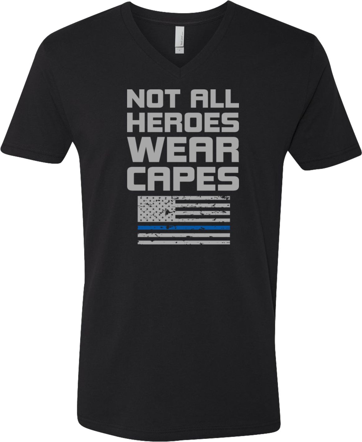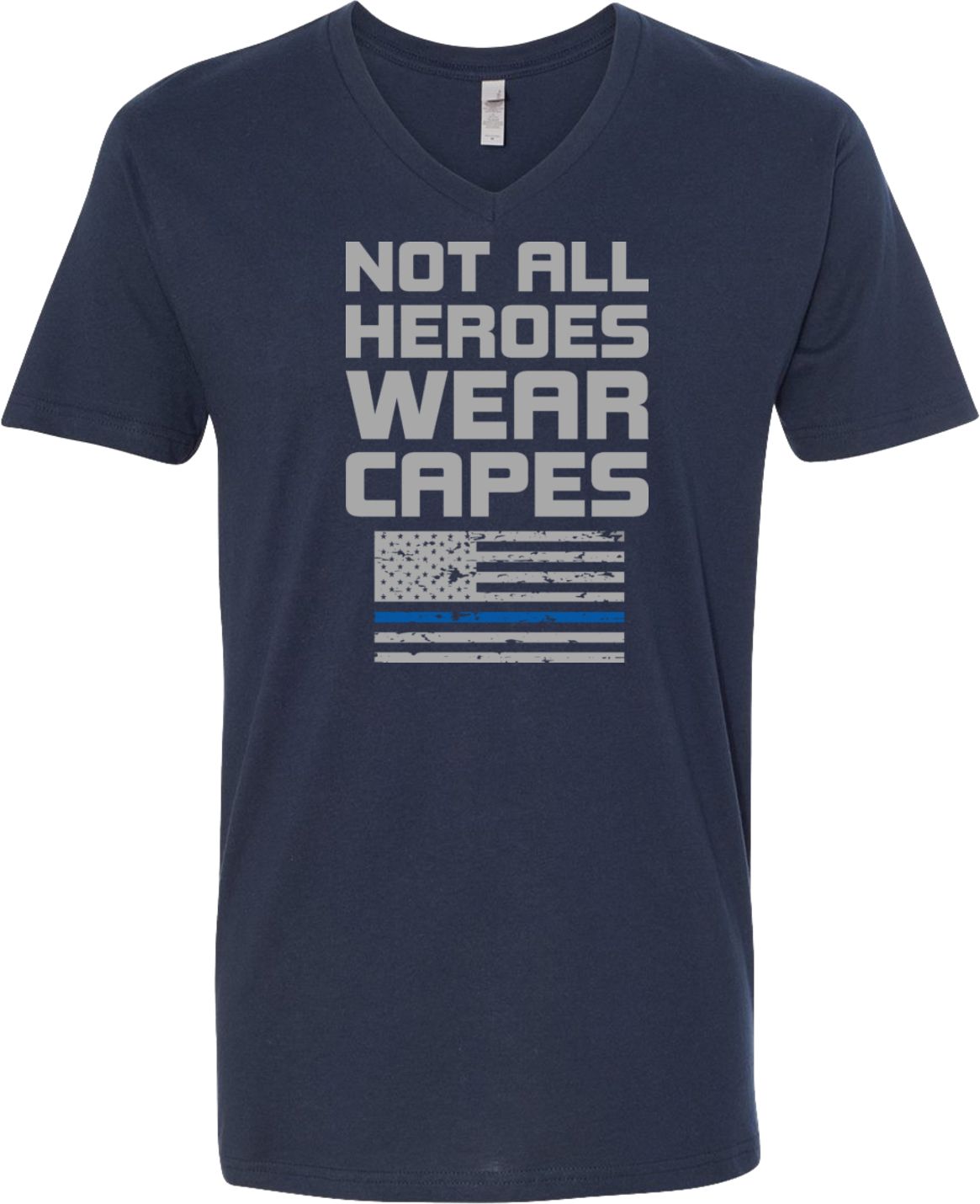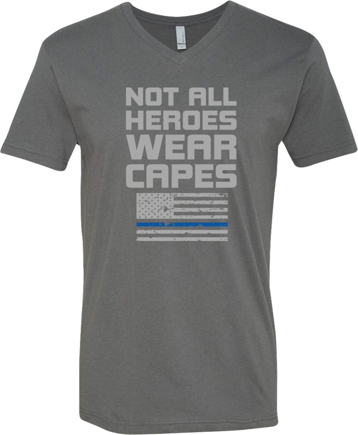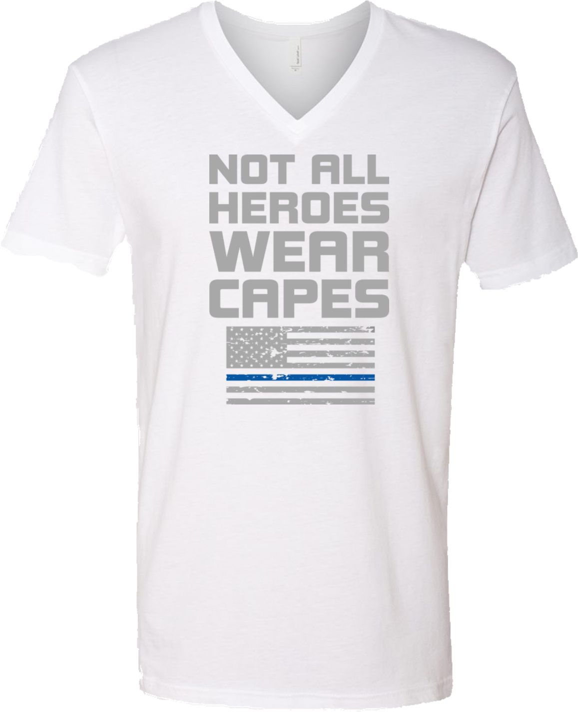 Not All Heroes Wear Capes Police Officer Adult V-Neck T-Shirt A 100% combed and ring spun cotton Heather colors are made of a cotton/poly blend Available in Small, Medium, Large, XL & 2XL Also available in colors Black, Heavy Metal, Navy, and White  |