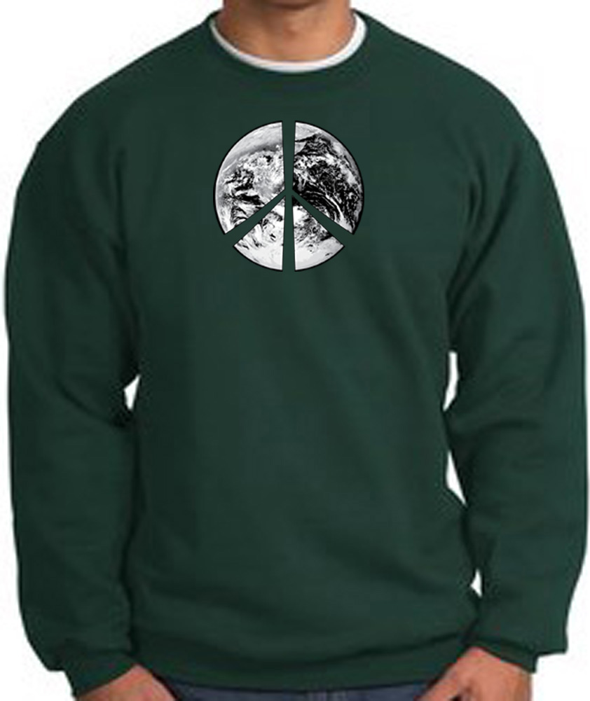 Peace Sweatshirt Peace Earth Satellite Image Sweatshirt Dark Green