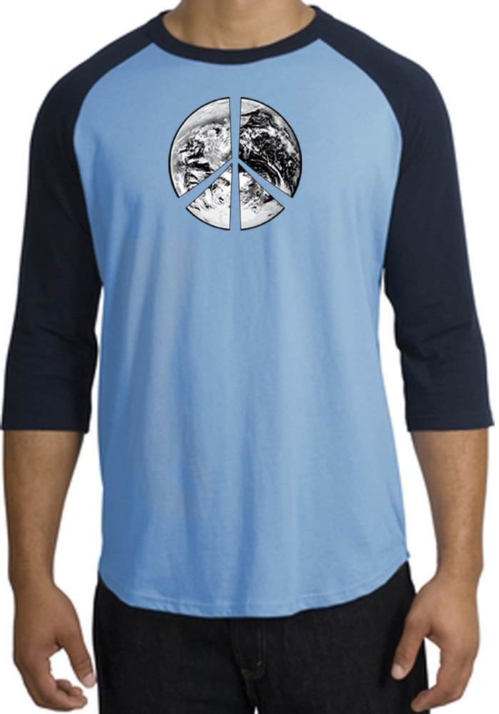 Peace Shirt Earth Satellite Image Raglan Shirt Carolina Blue/Navy