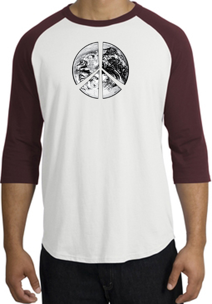 Peace Shirt Peace Earth Satellite Image Raglan Shirt White/Maroon