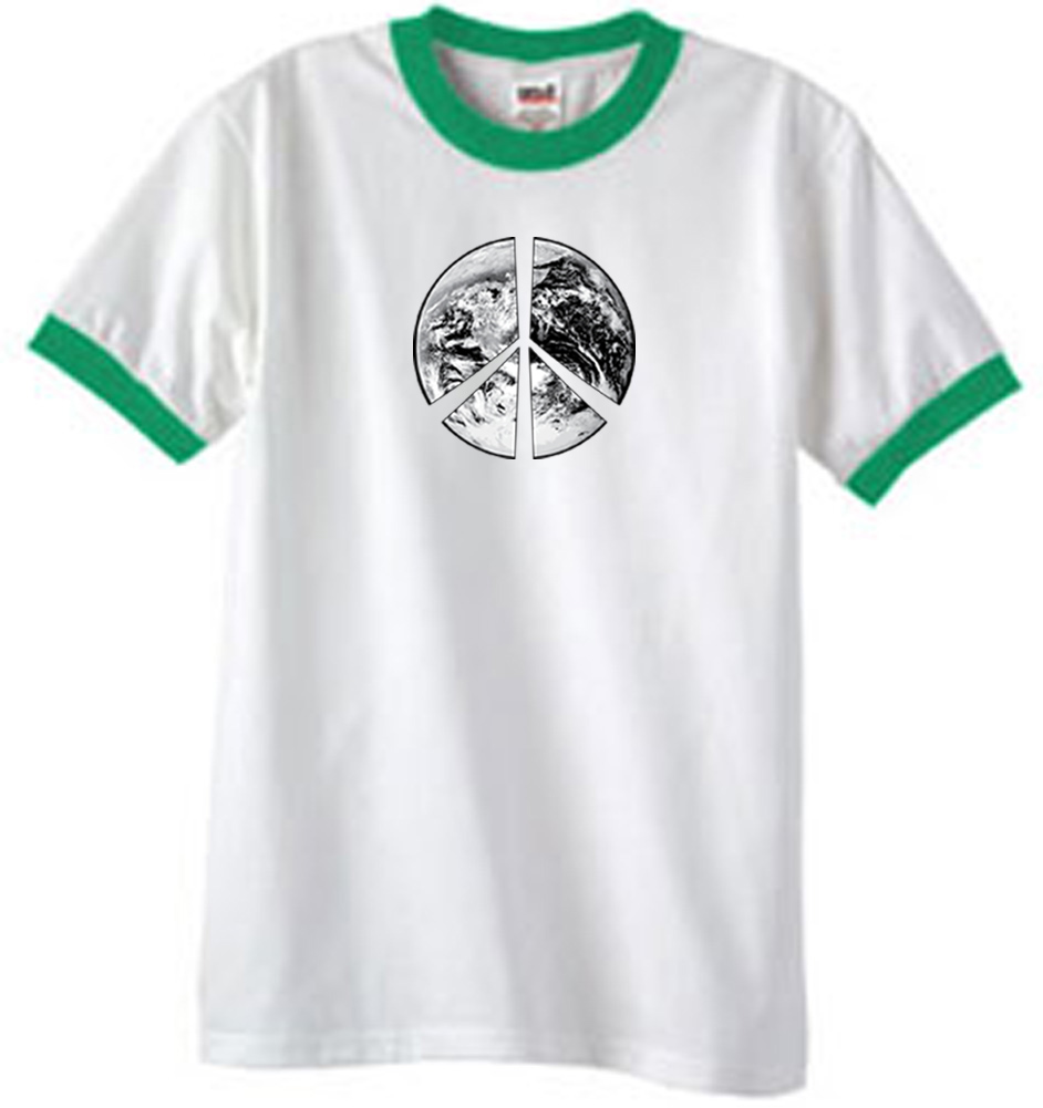 Peace Shirt Peace Earth Satellite Image Ringer Shirt White/Kelly