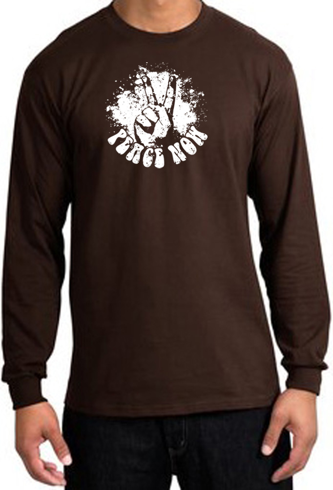 Peace Shirt Peace Now Retro Long Sleeve Tee Brown
