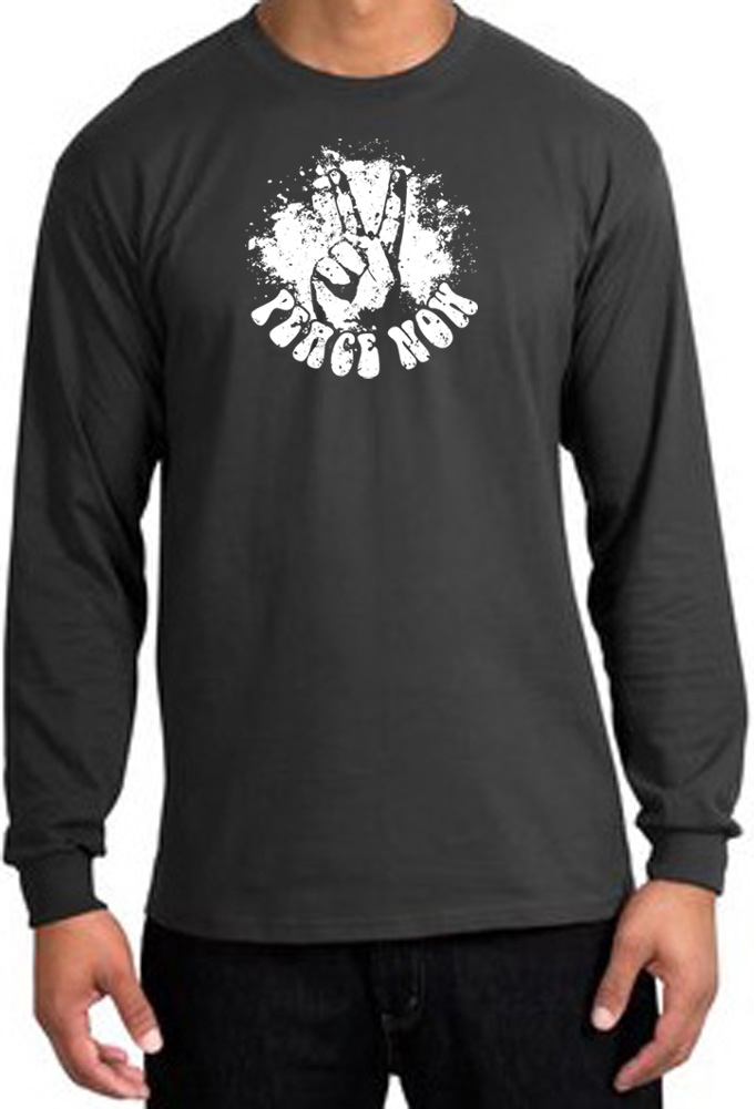 Peace Shirt Peace Now Retro Long Sleeve Tee Charcoal
