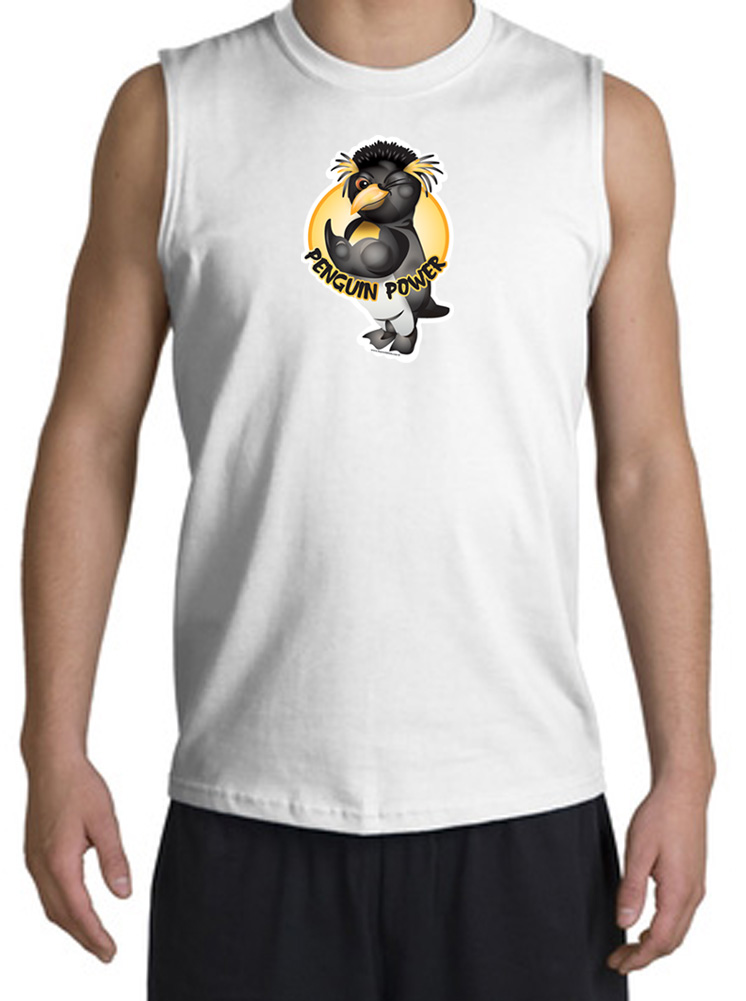 PENGUIN POWER Athletic Gym Workout Adult Muscle Shirt Shooter - White