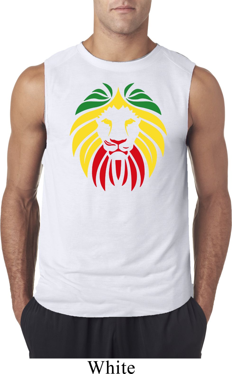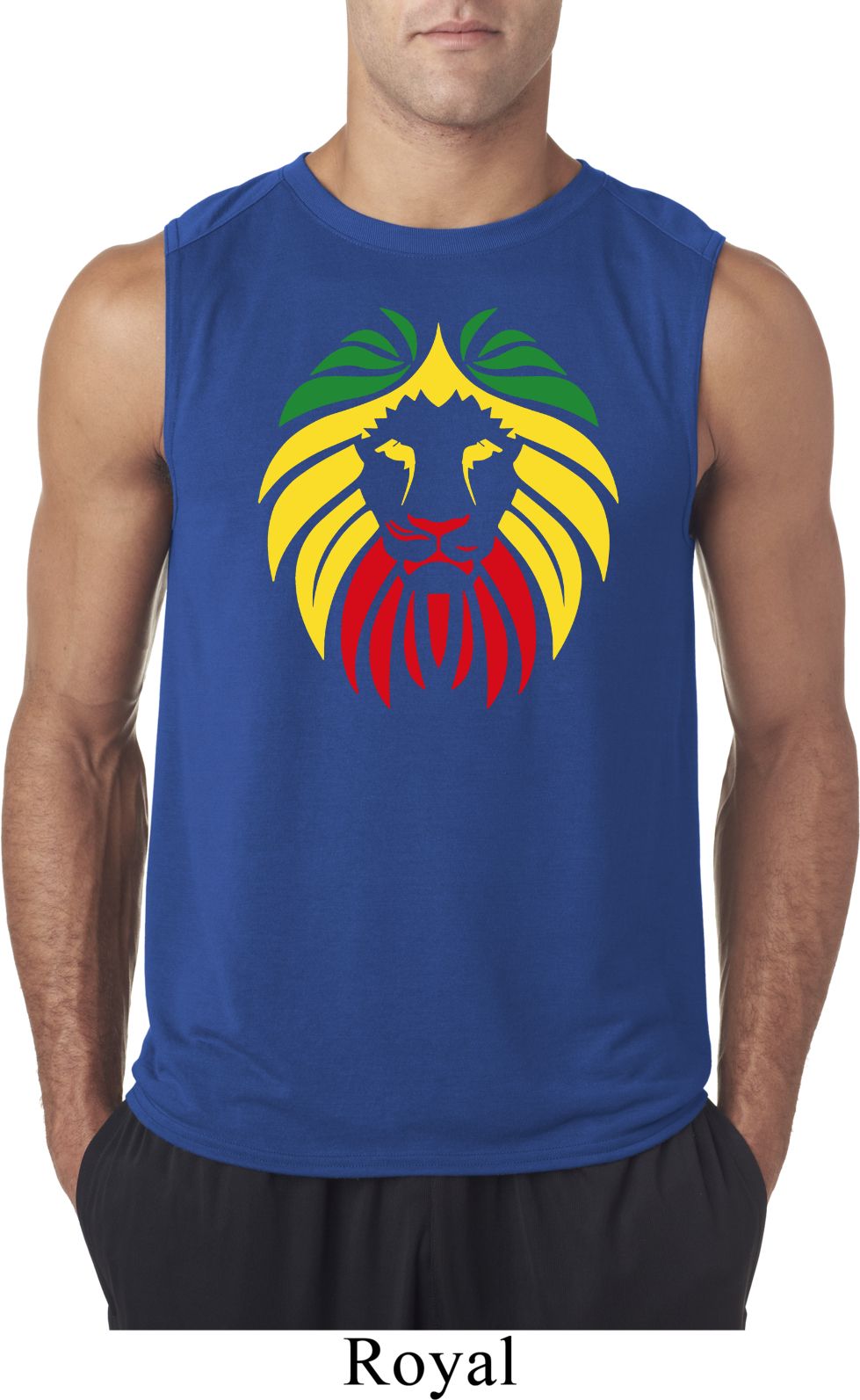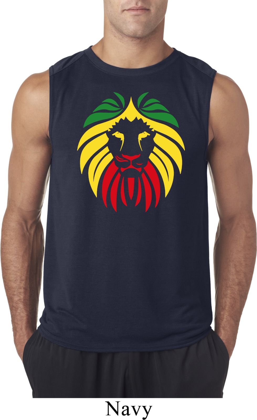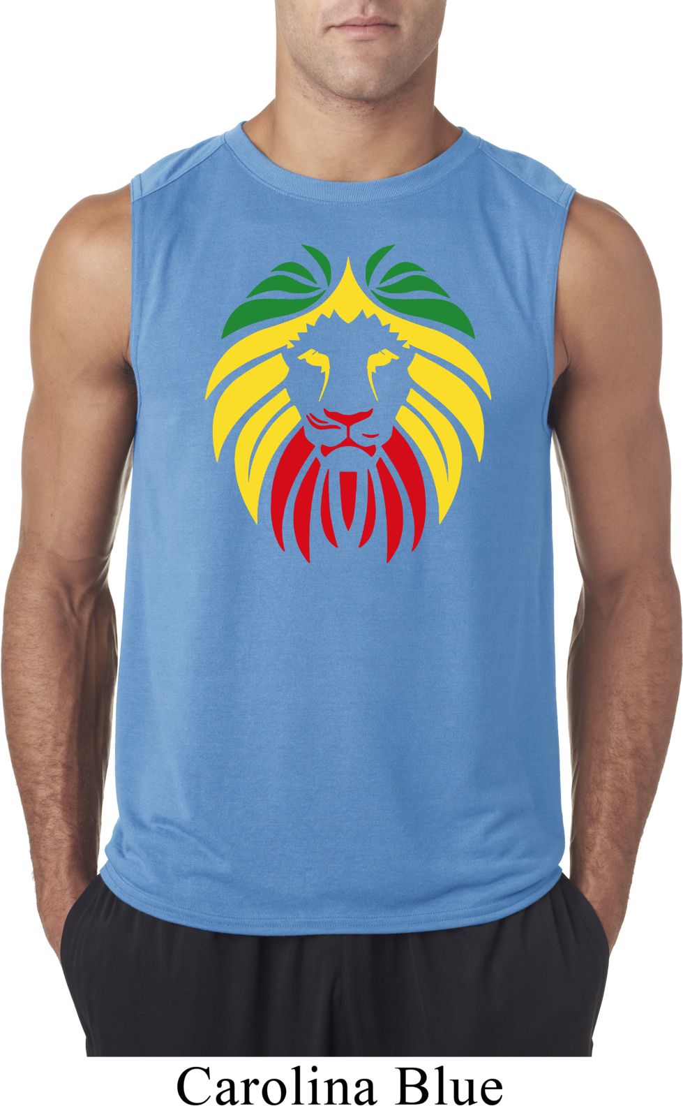 | | Rasta Lion Head Mens Sleeveless ShirtRasta Lion Head Mens Sleeveless Shirt Features the famous Rasta Lion 100% polyester Athletic heather is a cotton/poly blend Available in Small, Medium, Large, XL & 2XL Also available in colors Black, Carolina Blue, Charcoal, Navy, Royal, and White |