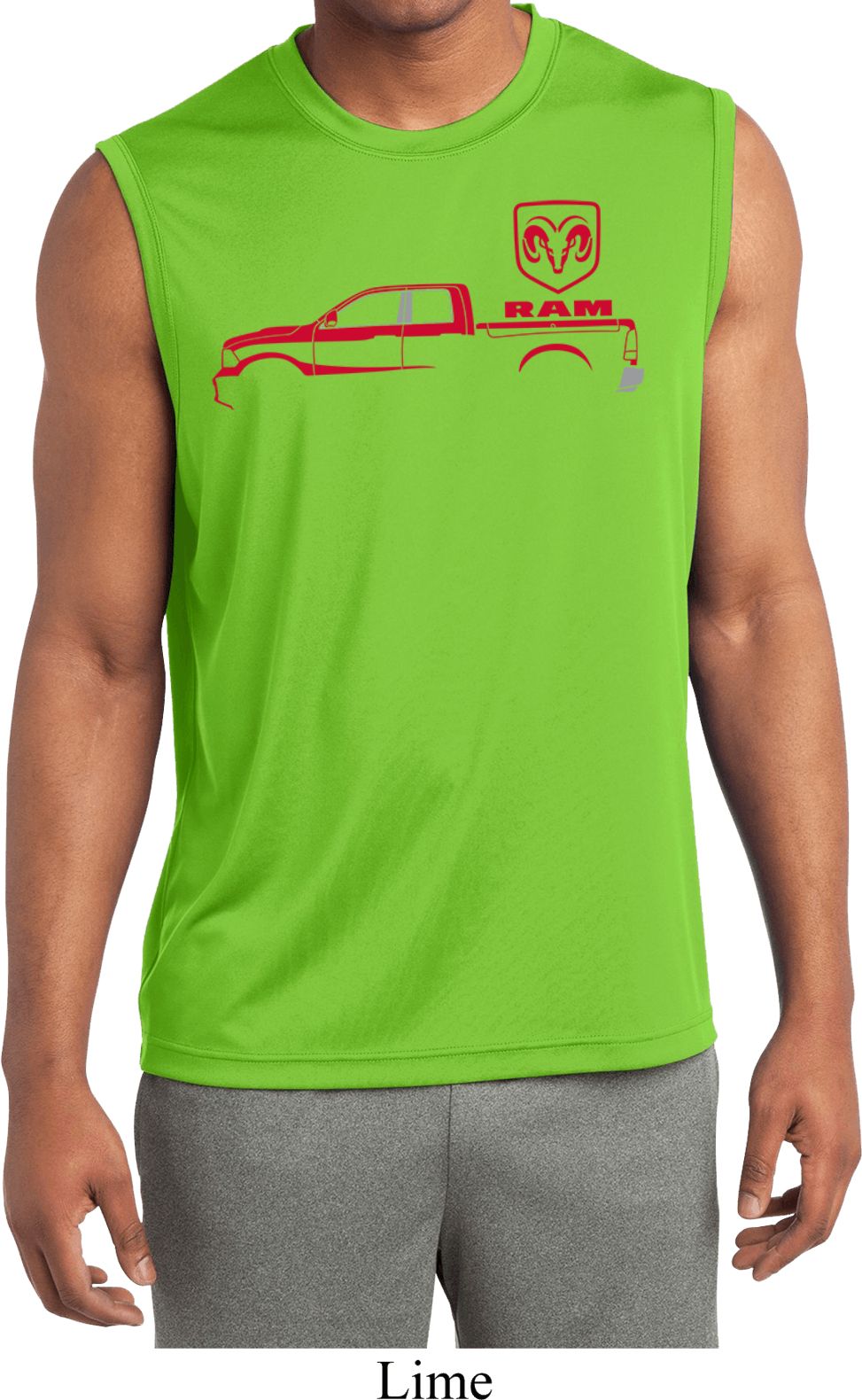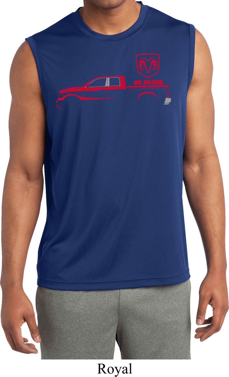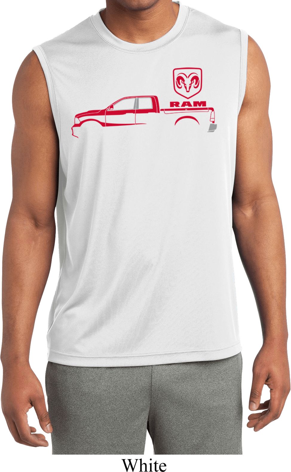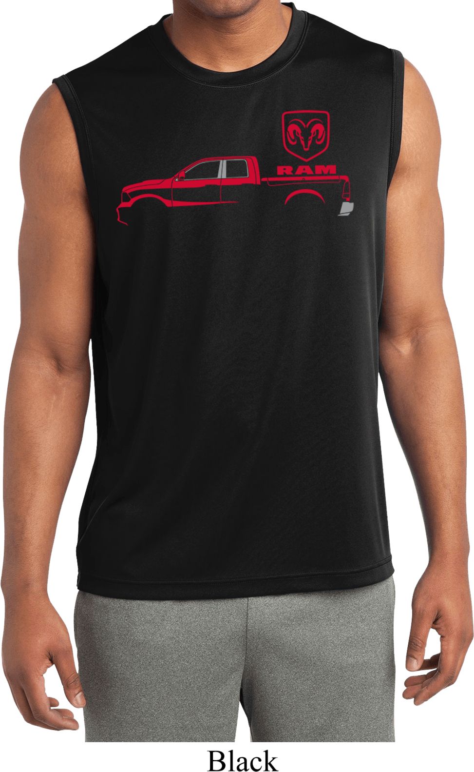 | | Red Dodge Ram Silhouette Dry Wicking Sleeveless ShirtA mens dry wicking muscle shirt featuring a Dodge Ram silhouette in red. Our mens tee is made of 100% polyester. A perfect gift for all who drive a Dodge Ram Truck! Available in sizes Small through 4XL. Machine wash cold with like colors; dry low heat. ![]() |