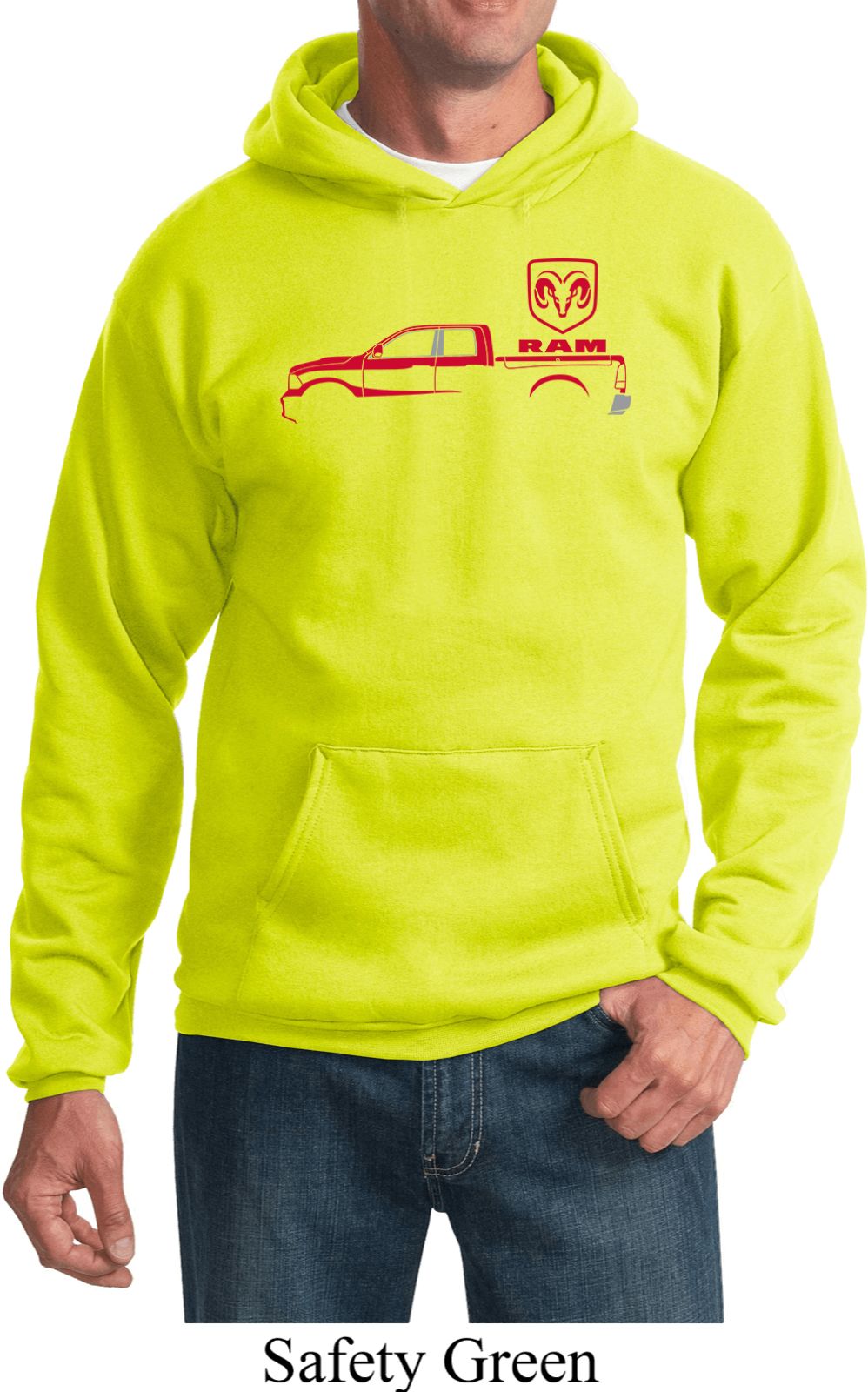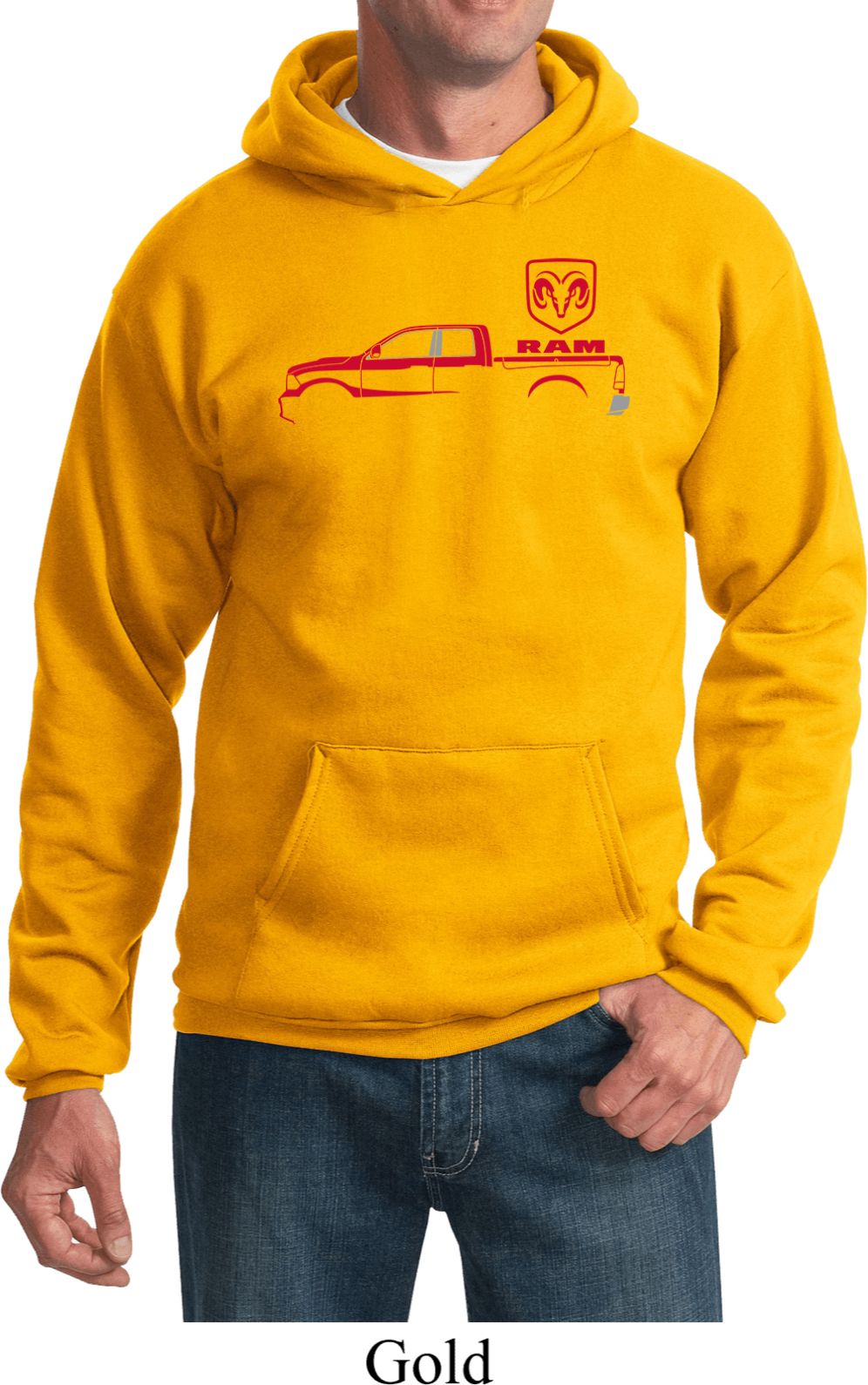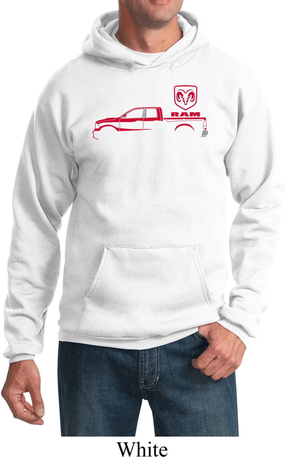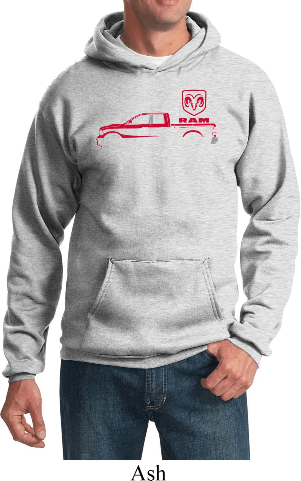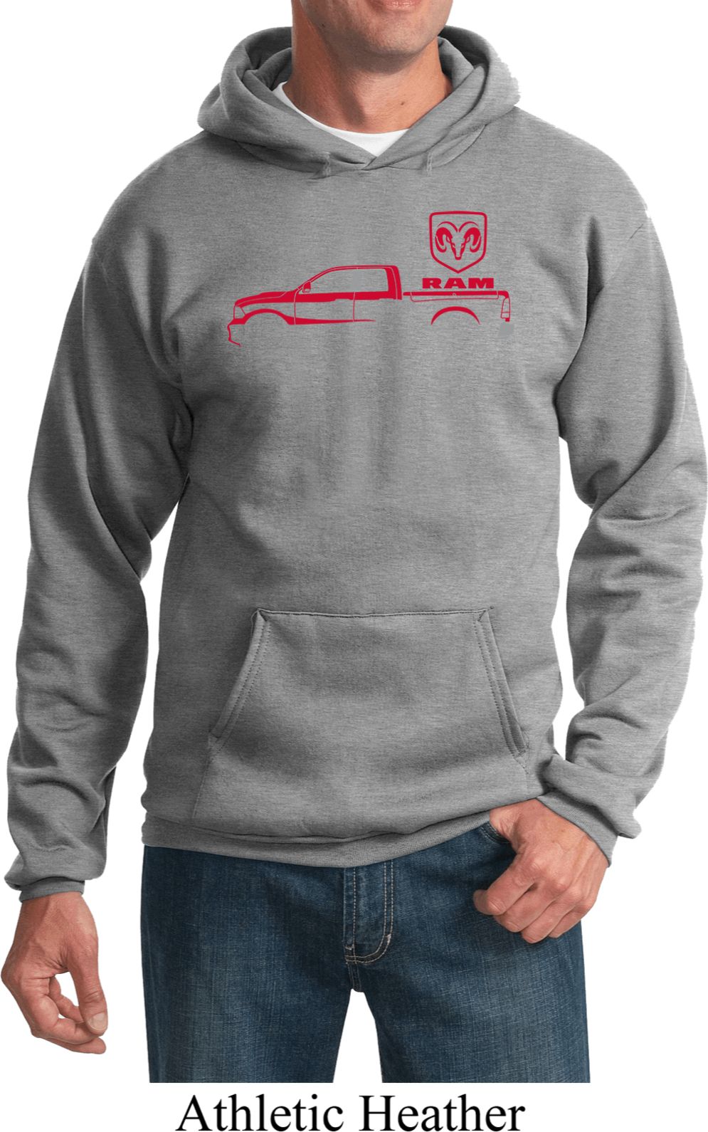 | | Red Dodge Ram Silhouette HoodieA mens hoodie with a kangaroo pouch pocket featuring a Dodge Ram silhouette in red. Our mens hoodie is made with a blend of cotton/poly. A perfect gift for all who drive a Dodge Ram Truck! Available in sizes Small through 4XL. Machine wash cold with like colors; dry low heat. ![]() |