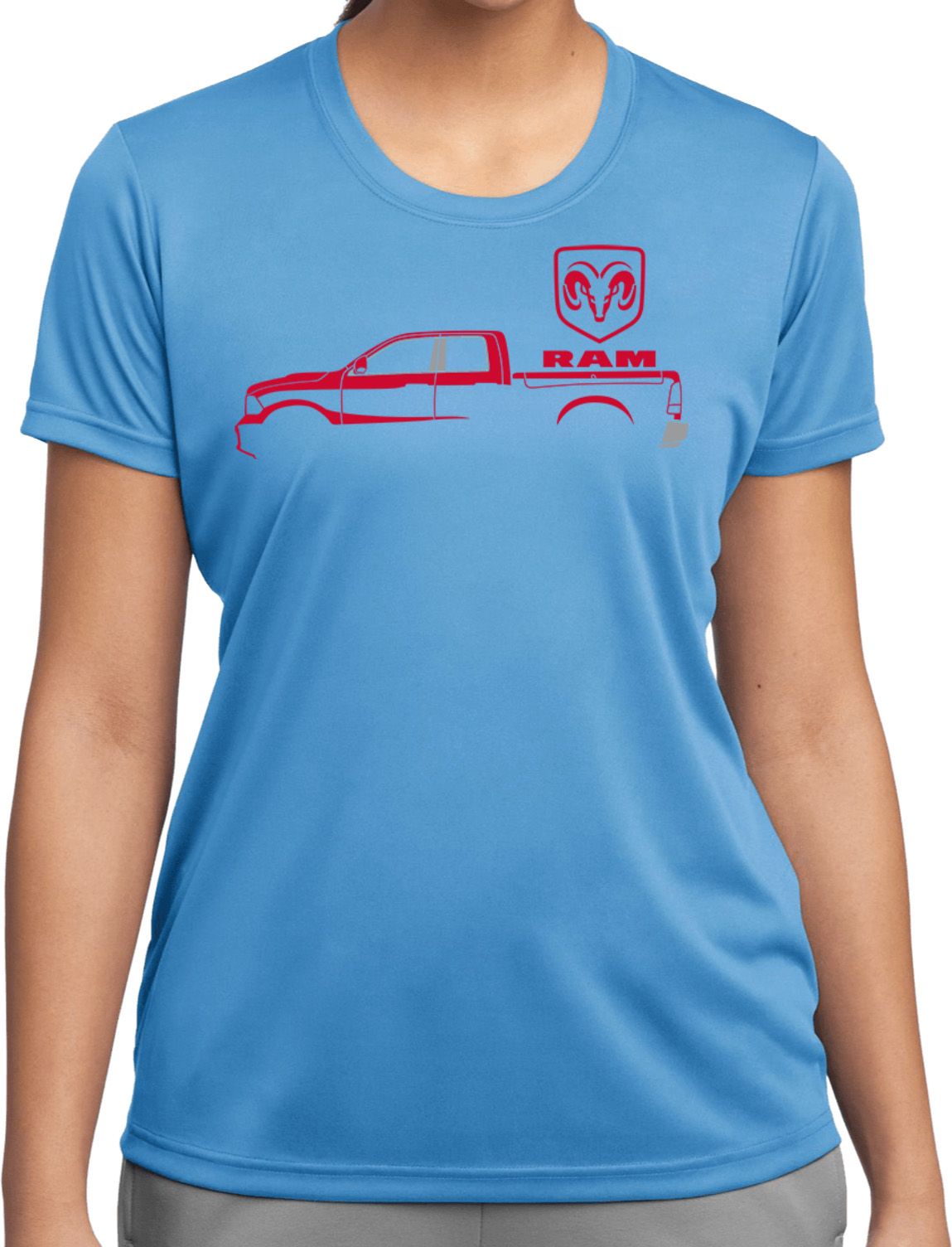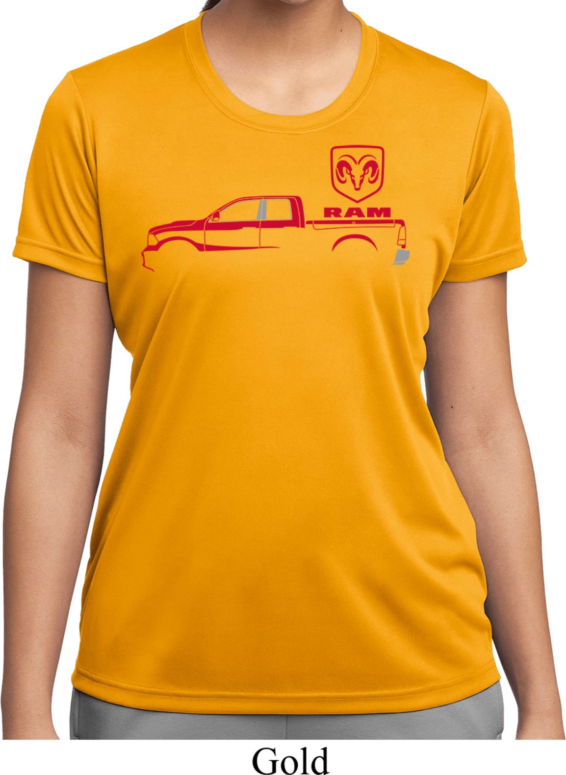 | | Red Dodge Ram Silhouette Ladies Dry Wicking T-shirtA ladies dry wicking t-shirt featuring a Dodge Ram silhouette in red. Our ladies shirt is made of 100% polyester. A perfect gift for all who drive a Dodge Ram Truck! Available in sizes Small through 3XL. Machine wash cold with like colors; dry low heat. ![]() |