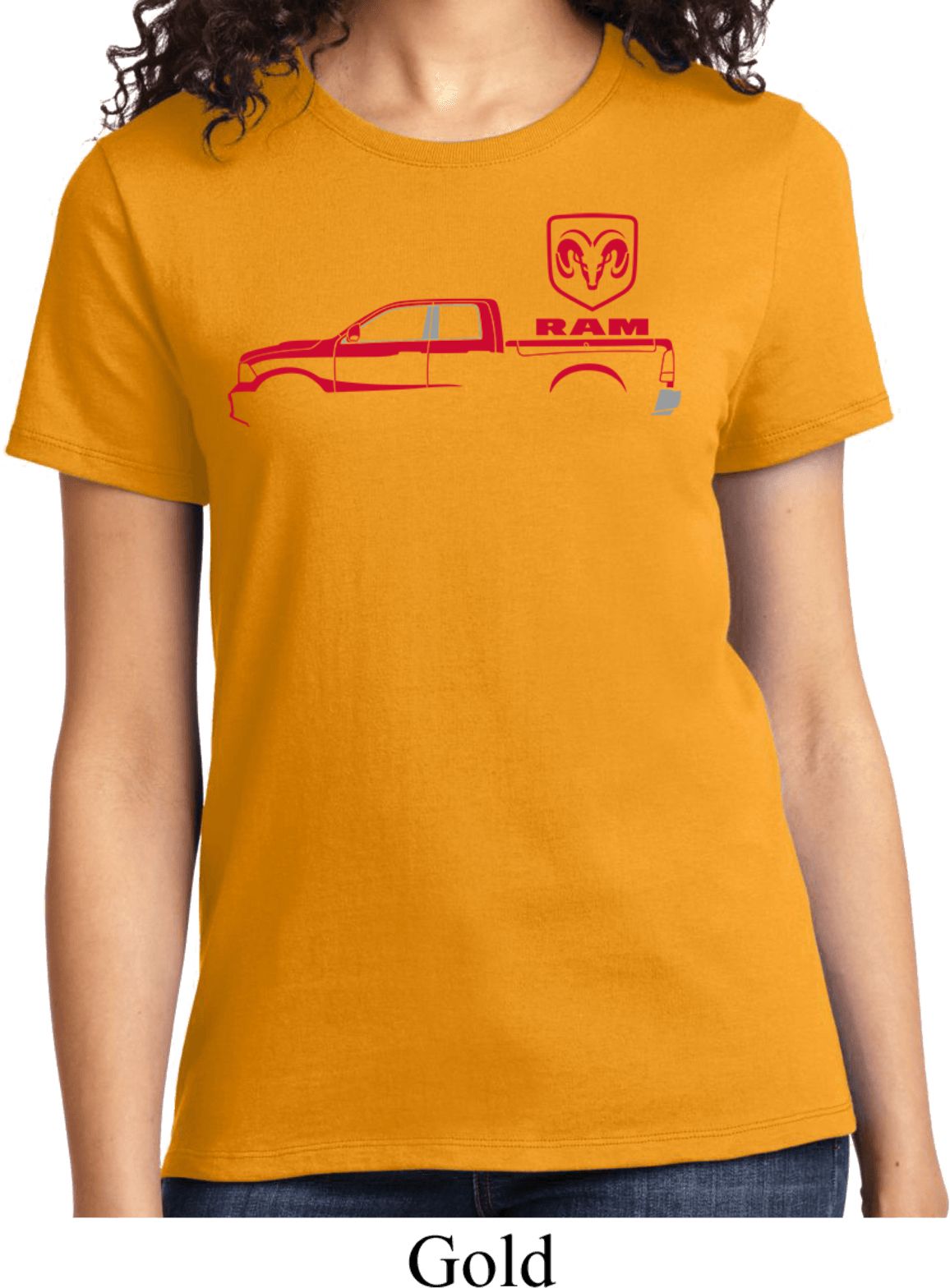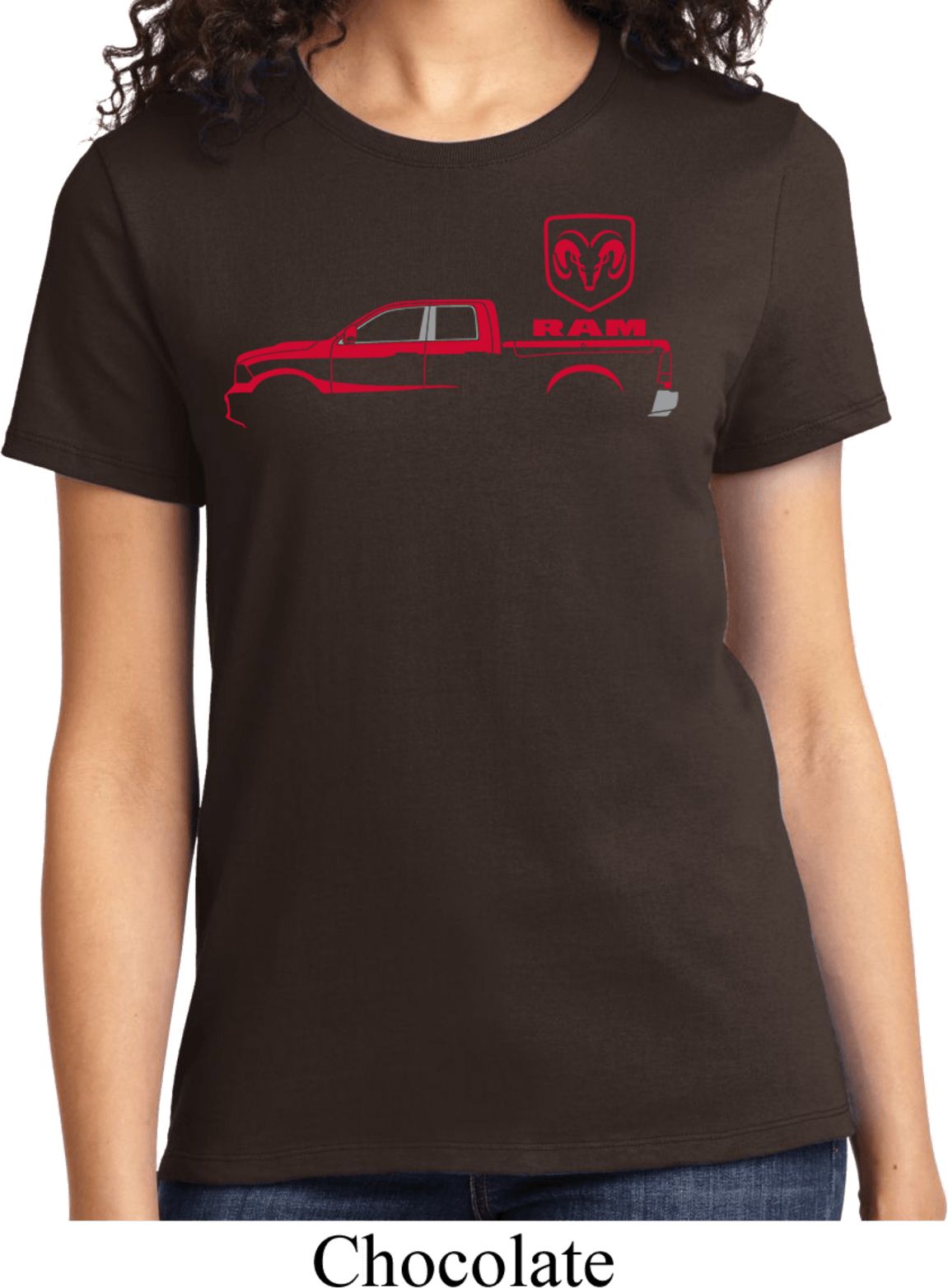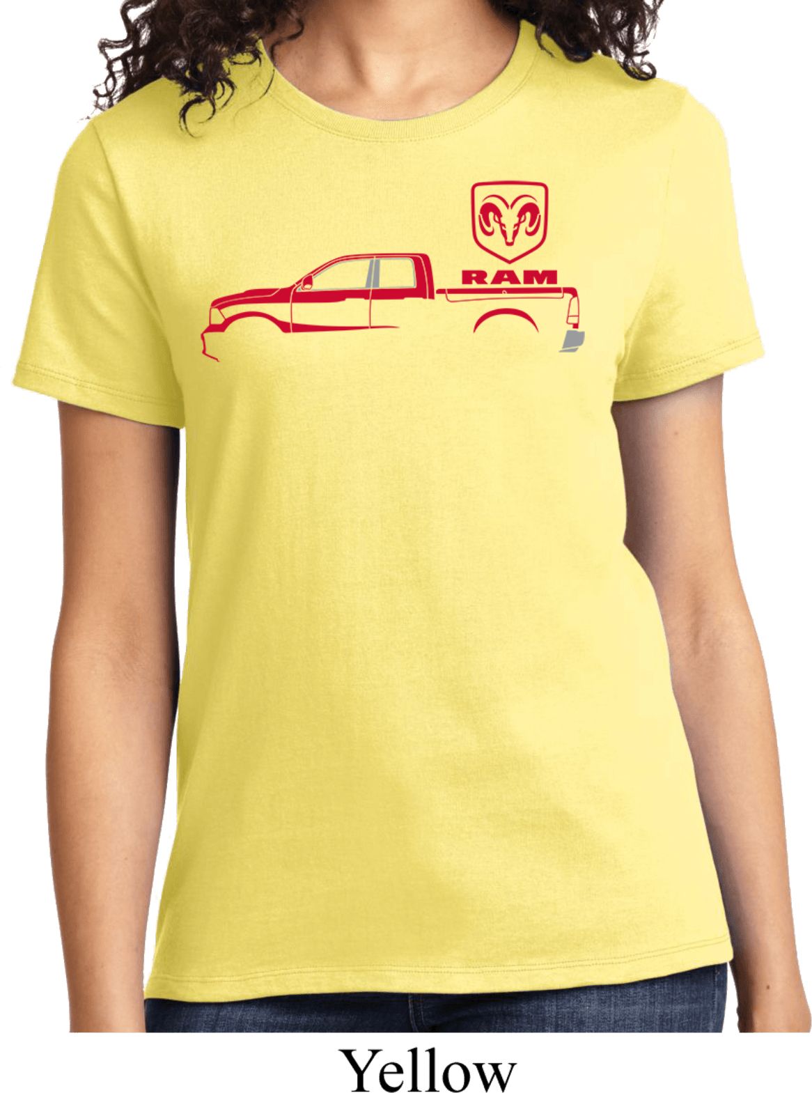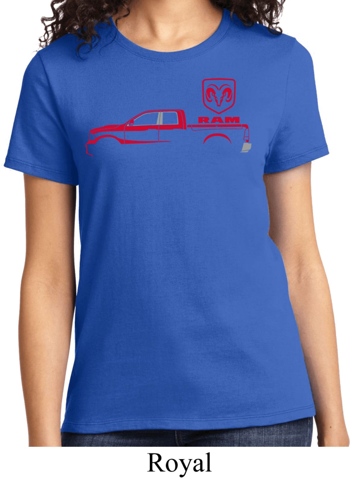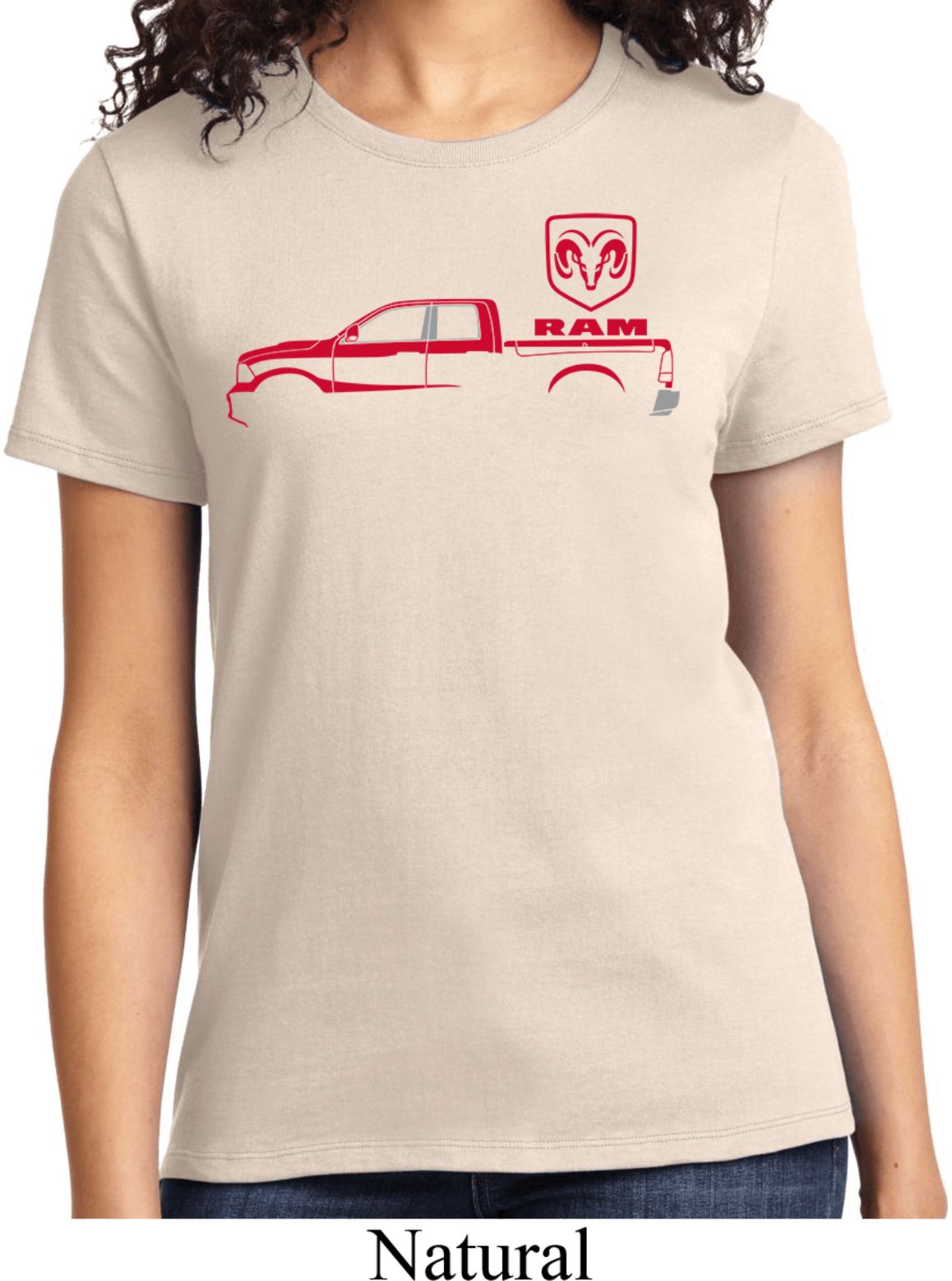 | | Red Dodge Ram Silhouette Ladies T-shirtA classic ladies t-shirt featuring a Dodge Ram silhouette in red. Our ladies shirt is made of 100% cotton. (Ash and Athletic Heather are made with a blend of cotton/poly) A perfect gift for all who drive a Dodge Ram Truck! Available in sizes Small through 4XL. Machine wash cold with like colors; dry low heat. ![]() |