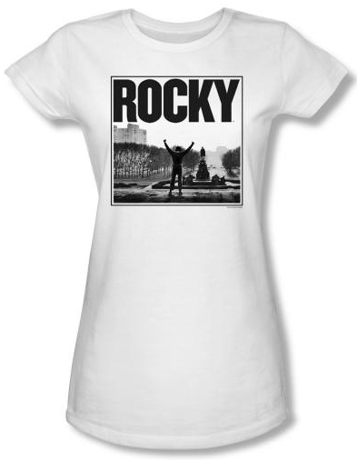| | Rocky Juniors T-shirt Top Of The Stairs White Tee ShirtThis Rocky White Juniors T-shirt features Rocky Balboa with his hands in the air at the top of the stairs. Our Rocky Juniors T-shirt is a fantastic 100% preshrunk cotton baby doll t-shirt for any Rocky fan. Rocky is a widely known American boxing series starring Sylvester Stallone as Rocky. Available in Small, Medium, Large, XL! Officially Licensed! |