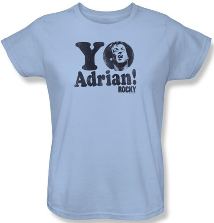 | | Rocky Ladies T-shirt Yo Adrian Classic Light Blue Tee ShirtThis Rocky Light Blue Ladies T-shirt features the famous slogan Yo Adrian! Our Rocky Ladies T-shirt is a fantastic 100% preshrunk cotton t-shirt for any Rocky fan. Rocky is a great American movie series starring Sylvester Stallone as Rocky. Available in Small, Medium, Large, XL & 2XL! Officially Licensed! |