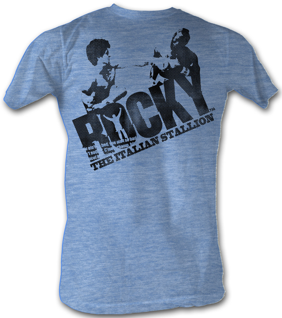 | | Rocky T-shirt Halftone Logo Italian Stallion Adult Blue Tee ShirtThis Rocky Blue T-shirt features a Rocky Halftone Logo with The Italian Stallion written underneath. Our Rocky T-shirt is a great 100% preshrunk cotton t-shirt for any Rocky fan. Rocky is a fantastic American Sports Drama Movie produced by Robert Chartoff and Irwin Winkler. Available in Small, Medium, Large, XL & 2XL! Officially Licensed! |