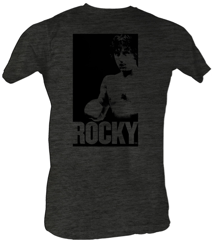 | | Rocky T-shirt In A Box Classic Adult Charcoal Tee ShirtThis Rocky Charcoal T-shirt features an image of Rocky in a black box. Our Rocky T-shirt is a great 100% preshrunk cotton t-shirt for any Rocky fan. Rocky is an awesome American Sports Drama Movie written by and starring Sylvester Stallone. Available in Small, Medium, Large, XL & 2XL! Officially Licensed! |