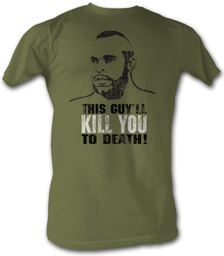 | | Rocky T-shirt Kill You To Death Adult Army Green Tee ShirtThis Rocky Army Green T-shirt features James Clubber Lang with the slogan “This Guy’ll Kill You To Death.” Our Rocky T-shirt is a perfect 100% preshrunk cotton t-shirt for any Rocky fan. Rocky is a great American Sports Drama Movie series from 1976-2006 produced by Robert Chartoff and Irwin Winkler. Available in Small, Medium, Large, XL & 2XL! Officially Licensed! |