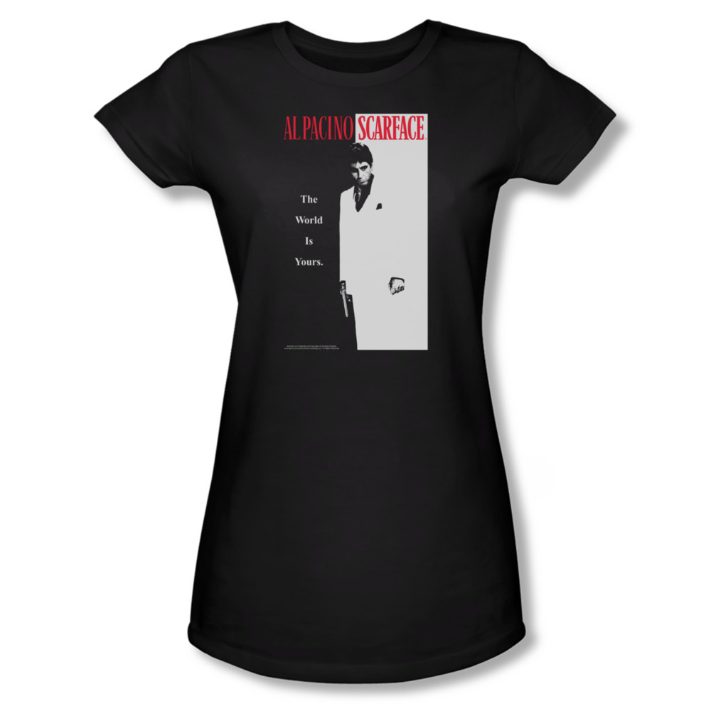| | Scarface Shirt Juniors Classic Black Tee T-ShirtScarface Shirt Juniors Classic Black Tee T-Shirt Officially Licensed Available in Small, Medium, Large, XL, 2XL Our Scarface shirts is 1983 crime movie starring Al Pacino film perfect for any fans of this action movie. ![]() |