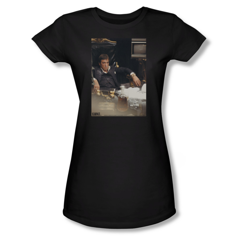 | | Scarface Shirt Juniors Sit Back Black Tee T-ShirtScarface Shirt Juniors Sit Back Black Tee T-Shirt Officially Licensed Available in Small, Medium, Large, XL, 2XL Our Scarface shirts is 1983 crime movie starring Al Pacino film perfect for any fans of this action movie. ![]() |