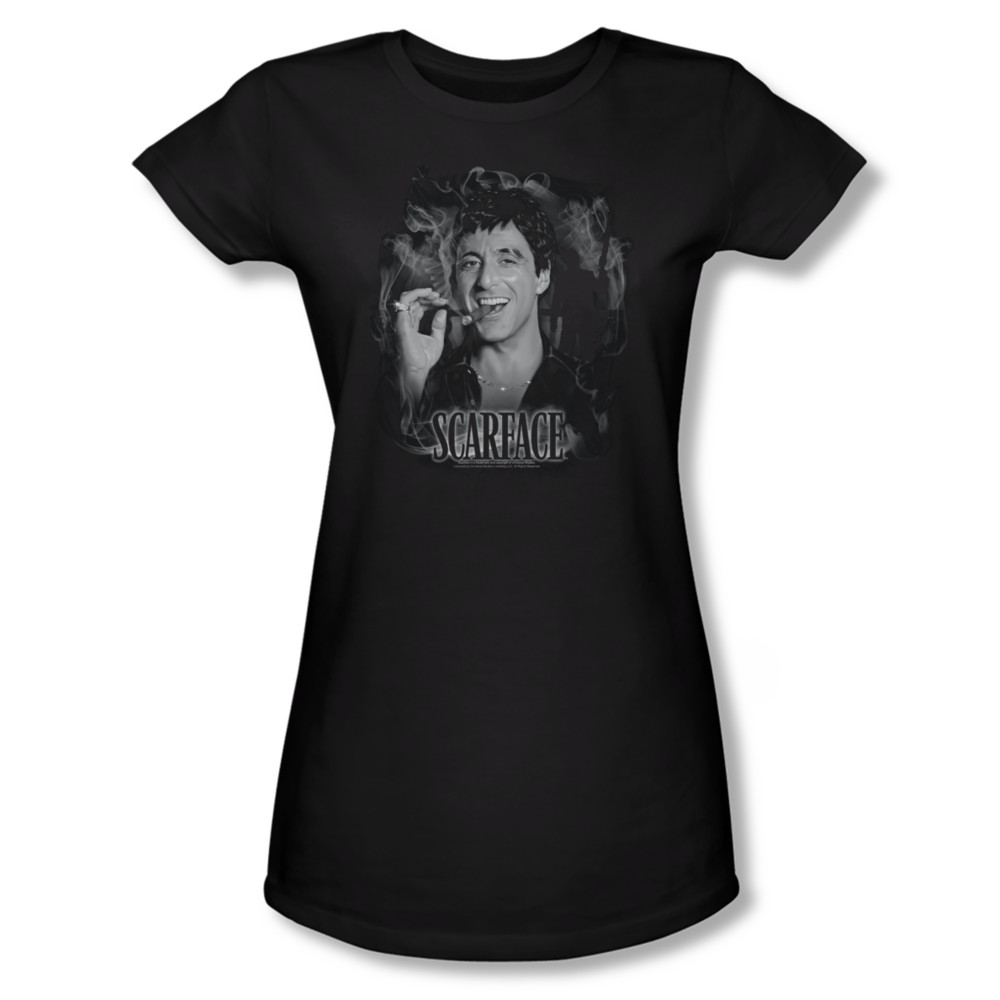 | | Scarface Shirt Juniors Smokey Scar Black Tee T-ShirtScarface Shirt Juniors Smokey Scar Black Tee T-Shirt Officially Licensed Available in Small, Medium, Large, XL, 2XL Our Scarface shirts is 1983 crime movie starring Al Pacino film perfect for any fans of this action movie. ![]() |