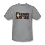 | | Scarface Shirt Juniors The World Is Yours Silver Tee T-ShirtScarface Shirt Juniors The World Is Yours Silver Tee T-Shirt Officially Licensed Available in Small, Medium, Large, XL, 2XL Our Scarface shirts is 1983 crime movie starring Al Pacino film perfect for any fans of this action movie. ![]() |