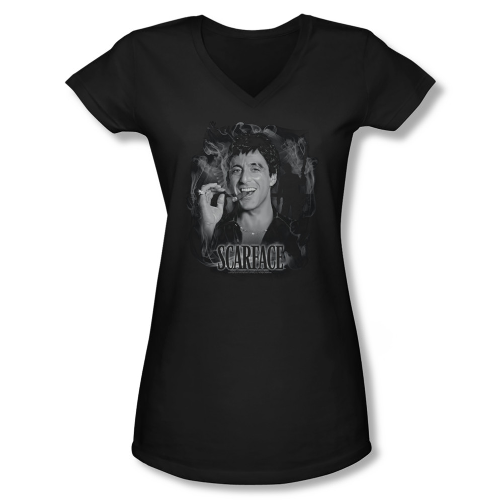 | | Scarface Shirt Juniors V Neck Smokey Scar Black Tee T-ShirtScarface Shirt Juniors V Neck Smokey Scar Black Tee T-Shirt Officially Licensed Available in Small, Medium, Large, XL & 2XL Our Scarface shirts is 1983 crime movie starring Al Pacino film perfect for any fans of this action movie. ![]() |