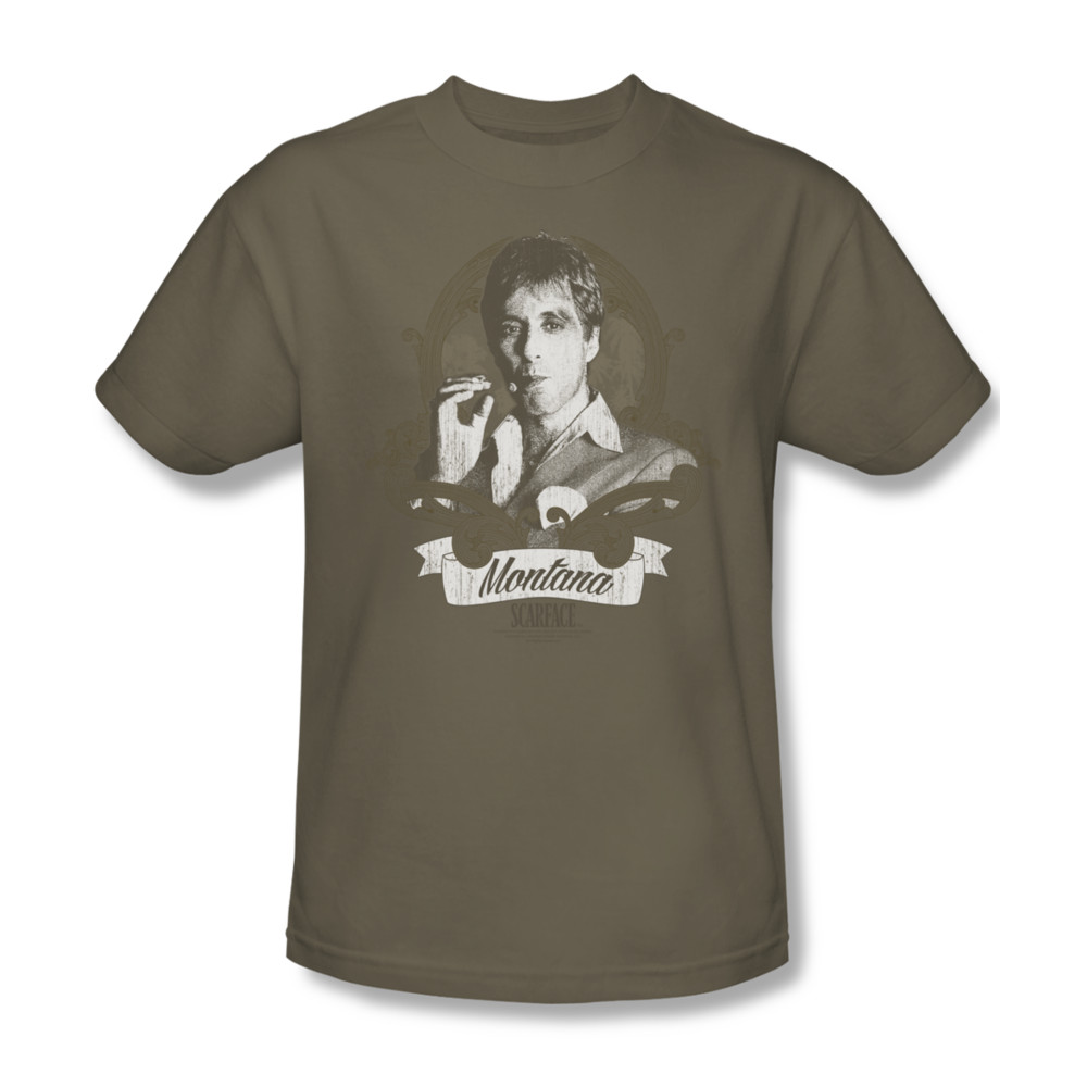 | | Scarface Shirt Montana Adult Safari Green Tee T-ShirtScarface Shirt Montana Adult Safari Green Tee T-Shirt Officially Licensed Available in Small, Medium, Large, XL, 2XL & 3XL Our Scarface shirts is 1983 crime movie starring Al Pacino film perfect for any fans of this action movie. ![]() |