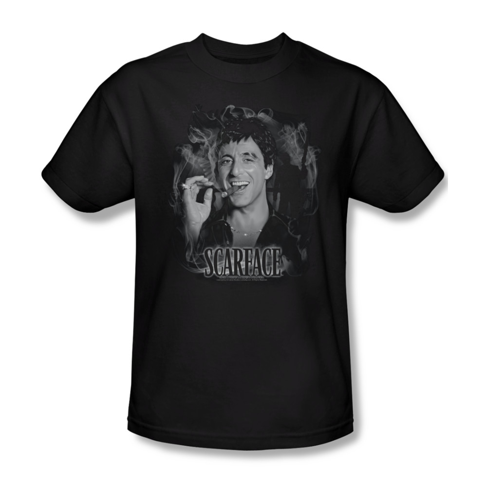 | | Scarface Shirt Smokey Scar Adult Black Tee T-ShirtScarface Shirt Smokey Scar Adult Black Tee T-Shirt Officially Licensed Available in Small, Medium, Large, XL, 2XL & 3XL Our Scarface shirts is 1983 crime movie starring Al Pacino film perfect for any fans of this action movie. ![]() |