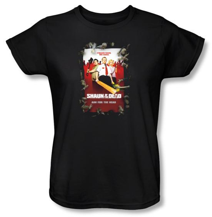 Shaun Of The Dead Ladies T-shirt Movie Poster Black Tee Shirt.