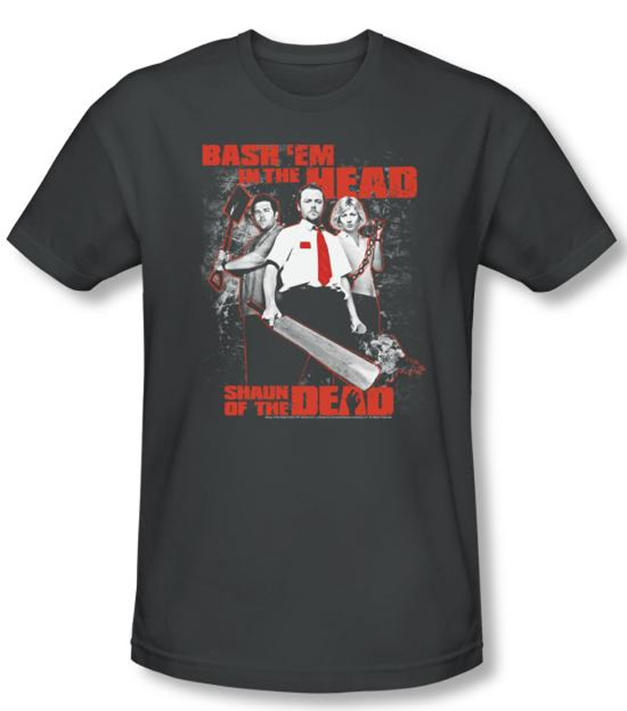 | | Shaun Of The Dead T-shirt Bash Em Adult Charcoal Slim Fit Tee ShirtShaun Of The Dead T-shirt Bash Em Adult Charcoal Slim Fit Tee Shirt. Let this t-shirt bring you back to funny memories of the movie Shaun Of The Dead. Available in Small, Medium, Large, XL, 2XL Officially Licensed |