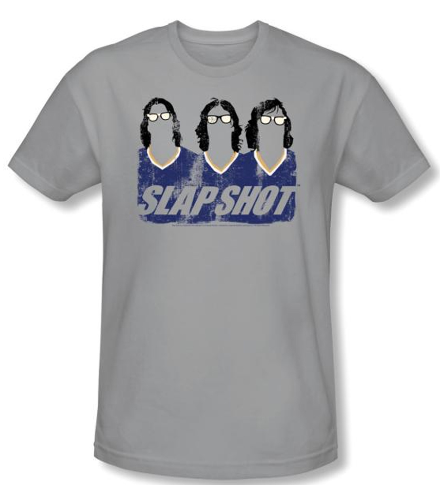 | | Slap Shot T-shirt Hockey Movie Brothers Adult Silver Slim Fit ShirtSlap Shot T-shirt Hockey Movie Brothers Adult Silver Slim Fit Shirt. This t-shirt comes in all sizes with a slim fit, sure to make you look great! Available in Small, Medium, Large, XL, 2XL Officially Licensed |