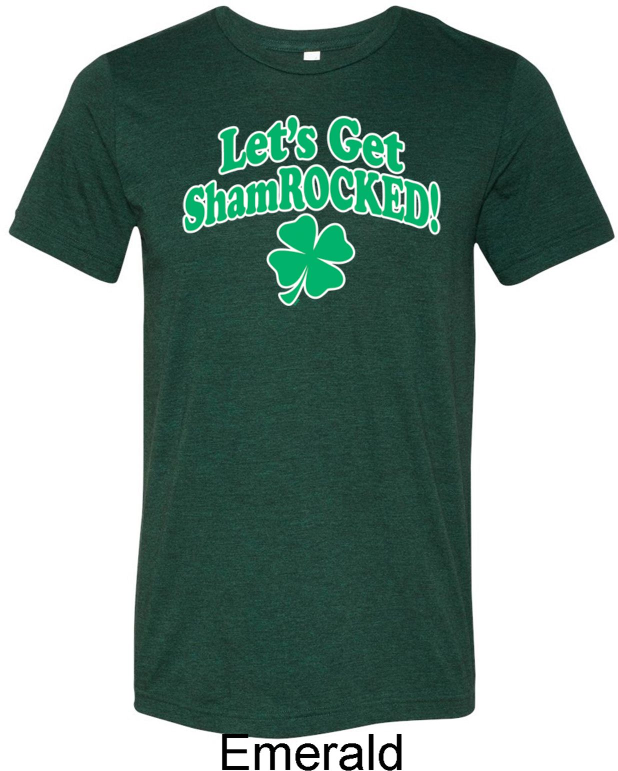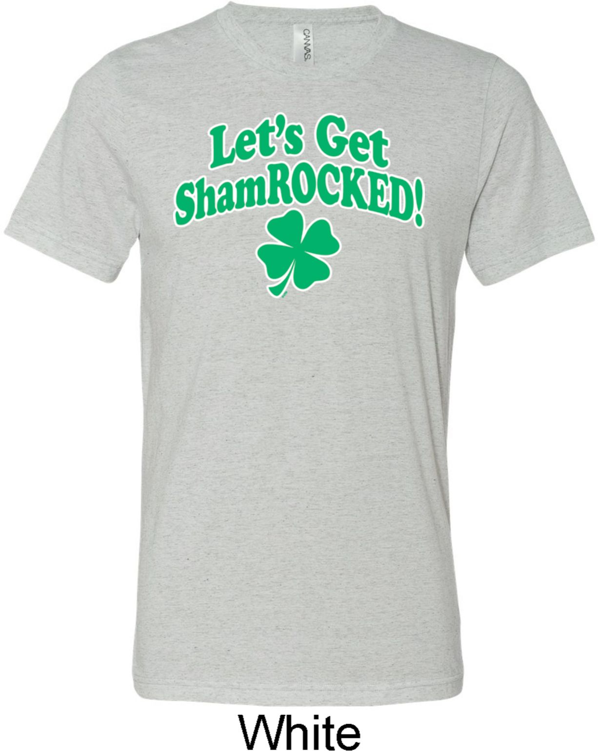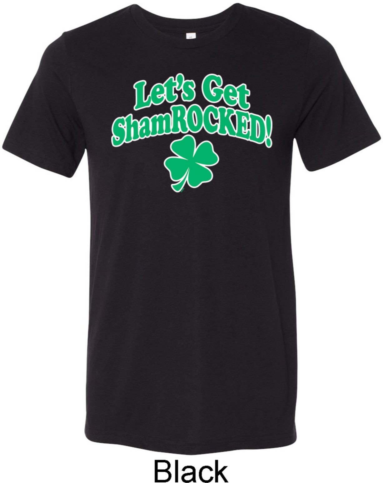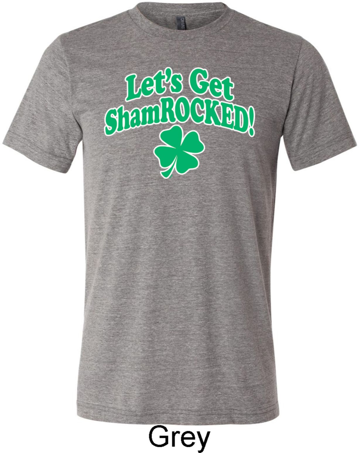 | | St Patricks Day Lets Get Shamrocked Tri Blend TeeA soft mens shirt featuring a funny saying for St. Patrick's Day: Lets Get ShamROCKED. Celebrate in style with this cool tee! Our shirt is favored for its soft touch and comfortable fit. Its made with a premium blend of cotton/poly/rayon. Available in sizes Small through 3XL. Machine wash cold with like colors; dry low heat. ![]() |