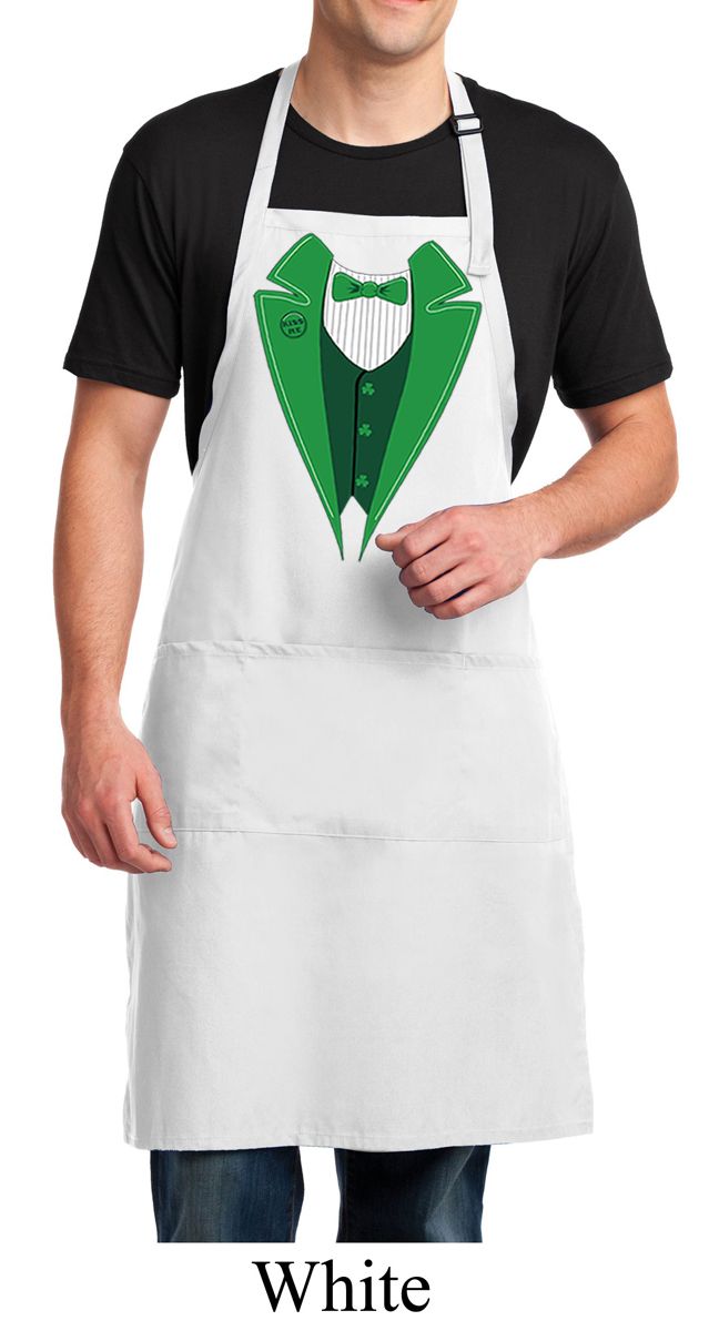 St Patricks Day Mens Apron Irish Tuxedo Full Length Apron with Pockets