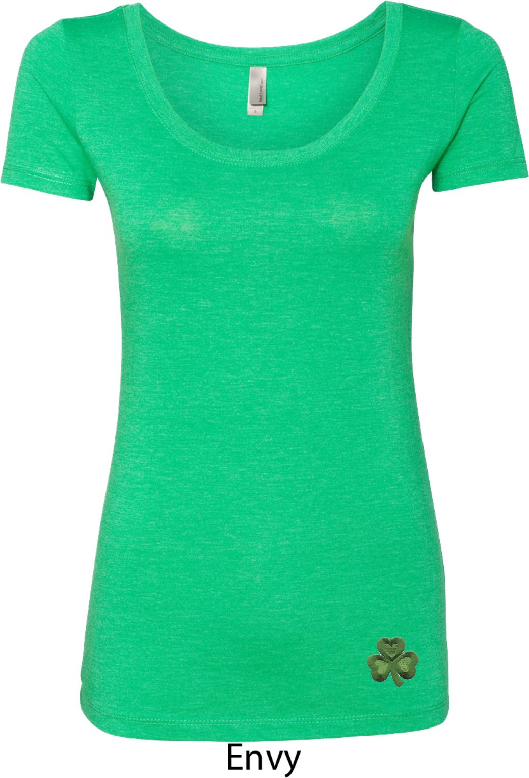 | | St Patricks Day Shamrock Patch Bottom Print Ladies Scoop NeckA ladies scoop neck shirt featuring an Irish Shamrock patch on the bottom. Our ladies slim fit shirt is favored for its soft touch and comfortable fit. It's made with a premium blend of poly/cotton/rayon. Available in sizes Small through 2XL. Machine wash cold with like colors; dry low heat. ![]() |