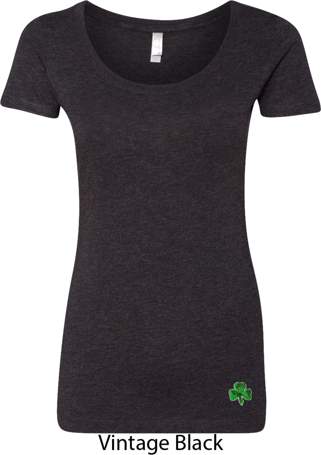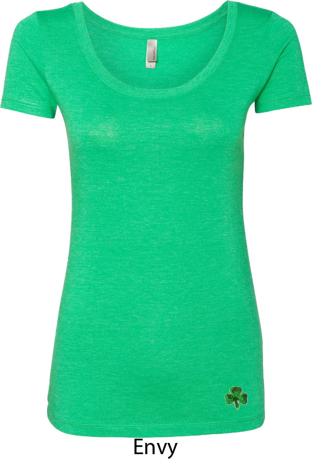 | | St Patricks Day Shamrock Sequins Bottom Print Ladies Scoop NeckA ladies scoop neck featuring an Irish Shamrock with sequins at the bottom. Our ladies shirt is favored for its slim fit silhouette and soft touch. It's made with a premium blend of poly/cotton/rayon. Available in sizes Small through 2XL. Machine wash cold with like colors; dry low heat. ![]() |