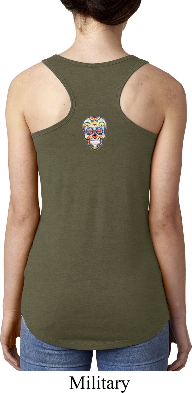 | | Sugar Skull Patch Back Print Ladies Ideal Tank TopSugar Skull Patch Back Print Ladies Ideal Tank Top Perfect for those who celebrate the day of the dead A cotton/poly blend Available in Ladies Small, Ladies Medium, Ladies Large, Ladies XL & Ladies 2XL Also available in colors Banana, Black, Cancun, Dark Grey, Heather Grey, Hot Pink, Indigo, Kelly, Light Orange, Lilac, Midnight, Military, Mint, Purple Rush, Raspberry, Red, Royal, Scarlet, Silver, Tahiti, Turquoise, Warm Grey, and White |