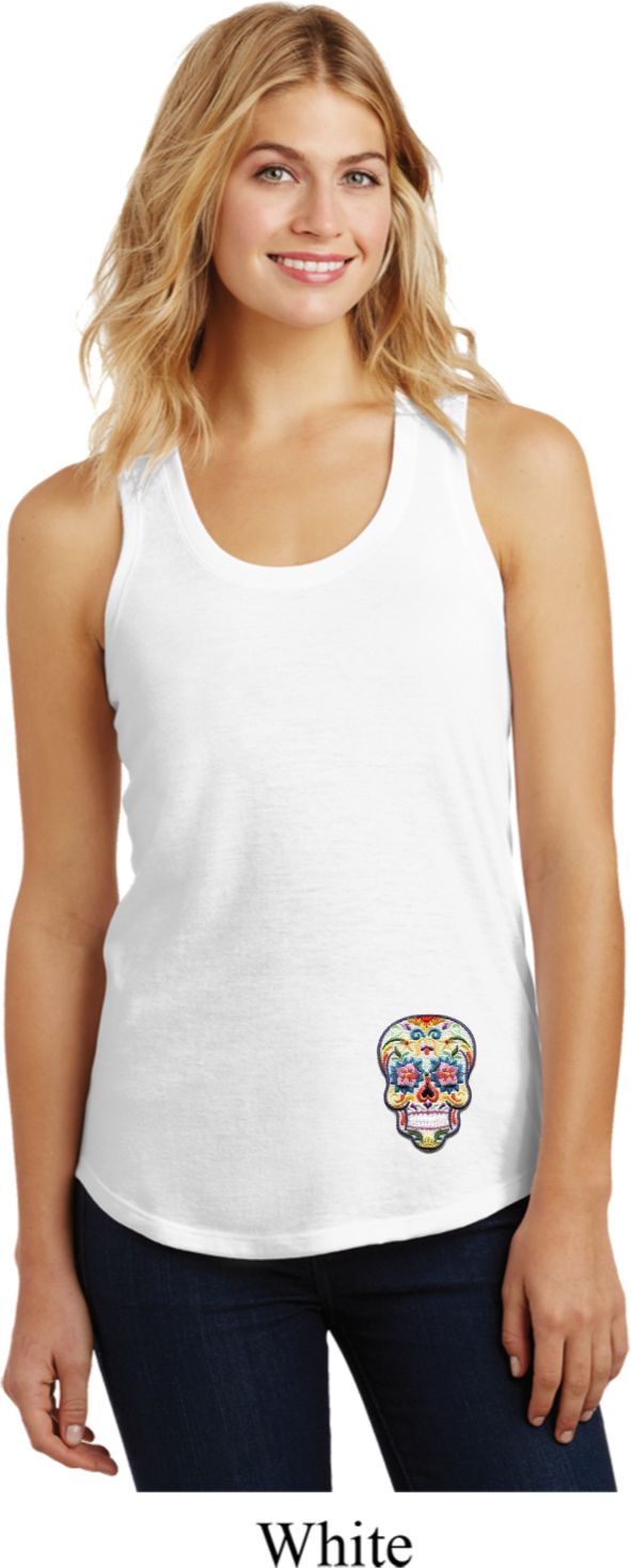| | Sugar Skull Patch Bottom Print Ladies Racerback Tank TopSugar Skull Patch Bottom Print Ladies Racerback Tank Top Perfect for those who celebrate the day of the dead A cotton/poly/rayon blend Available in Ladies Small, Ladies Medium, Ladies Large, Ladies XL, Ladies 2XL, Ladies 3XL & Ladies 4XL Also available in colors Black Frost, Fuschia Frost, Grey Frost, Navy Frost, Purple Frost, Red Frost, Royal Frost, Turquoise Frost, and White |