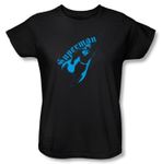 This black ladies t-shirt features Bizarro Superman, the mirror image and antagonist of the Man of Steel.