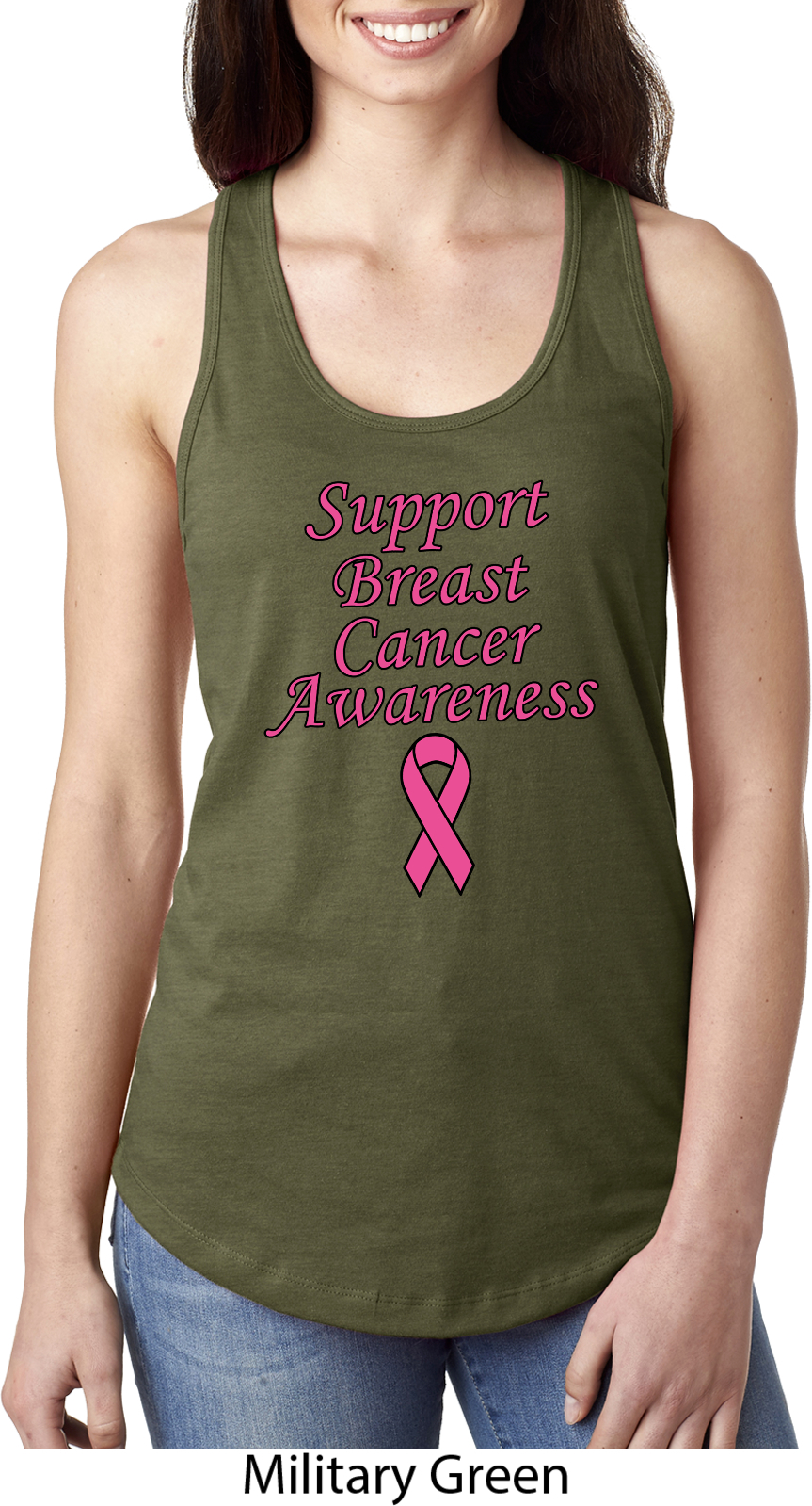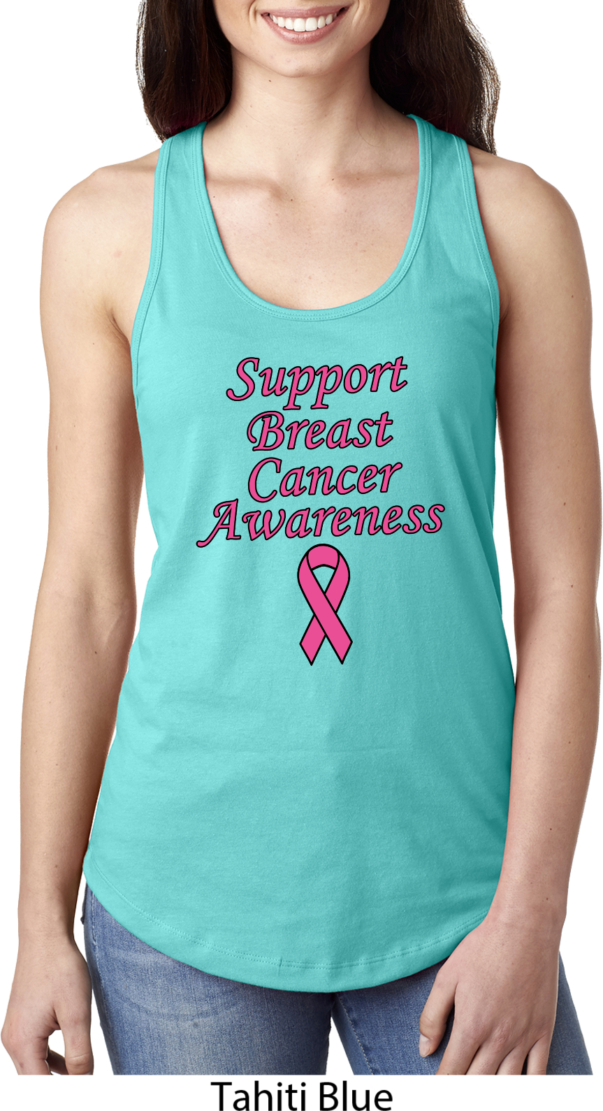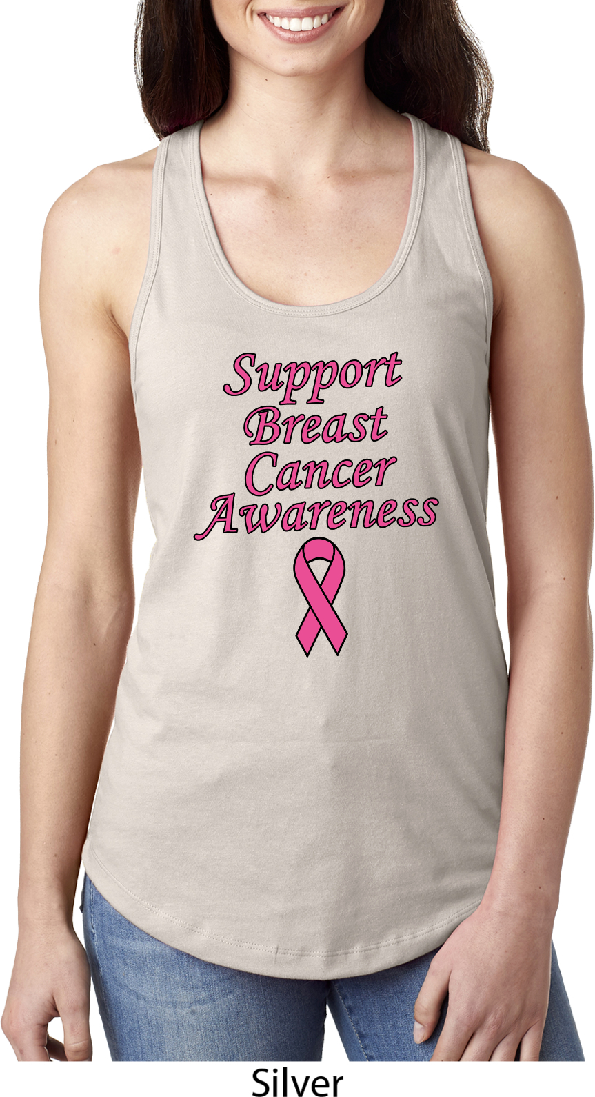 | | Support Breast Cancer Awareness Ladies Ideal RacerbackA ladies racerback featuring Support Breast Cancer Awareness. Our ladies tank top is made with a blend of cotton/poly. Support all fighting Breast Cancer while wearing our ladies tanktop. Available in sizes Small through 2XL. Machine wash cold with like colors; dry low heat. ![]() |