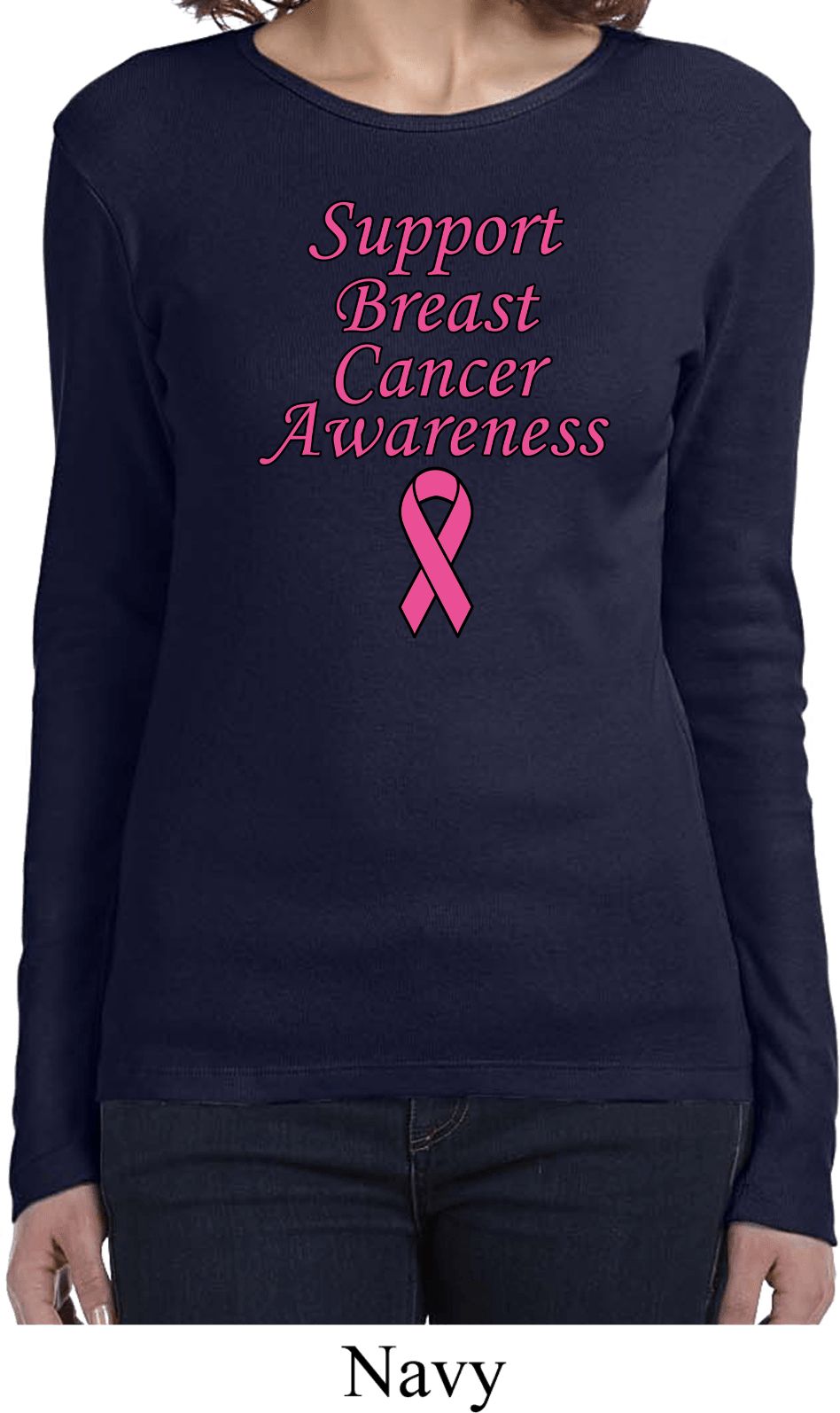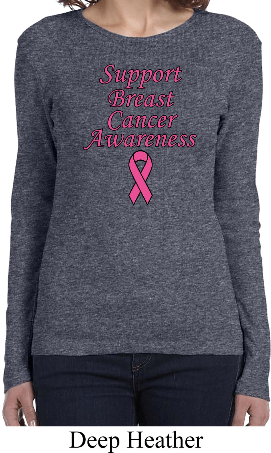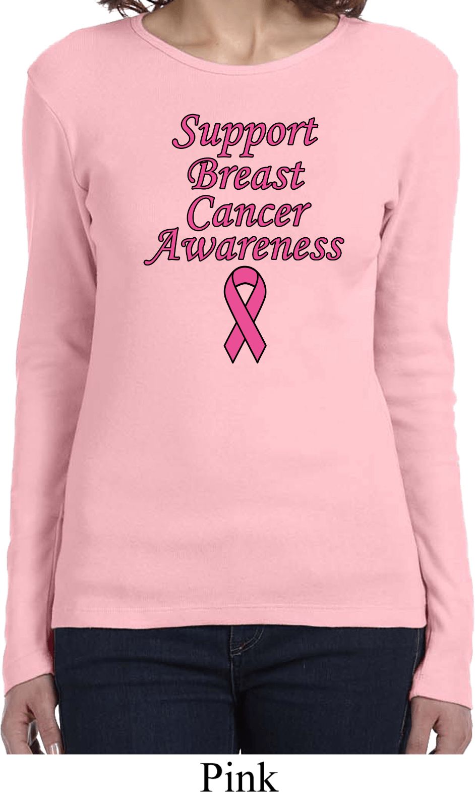 | | Support Breast Cancer Awareness Ladies Long SleeveA ladies long sleeve featuring Support Breast Cancer Awareness. Our ladies shirt is made of 100% cotton. (Deep Heather is made with a blend of cotton/poly) Support all fighting Breast Cancer while wearing our ladies tee. Available in sizes Small through 2XL. Machine wash cold with like colors; dry low heat. ![]() |