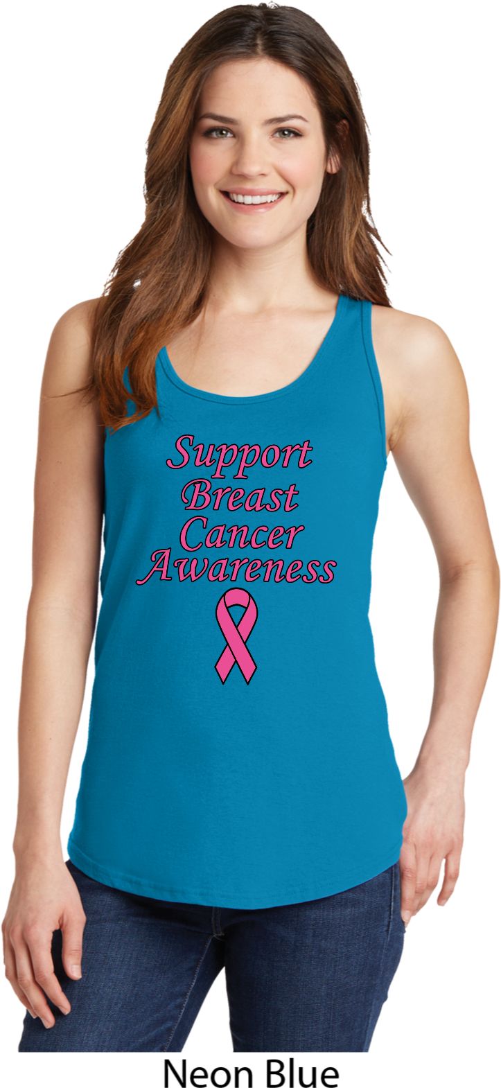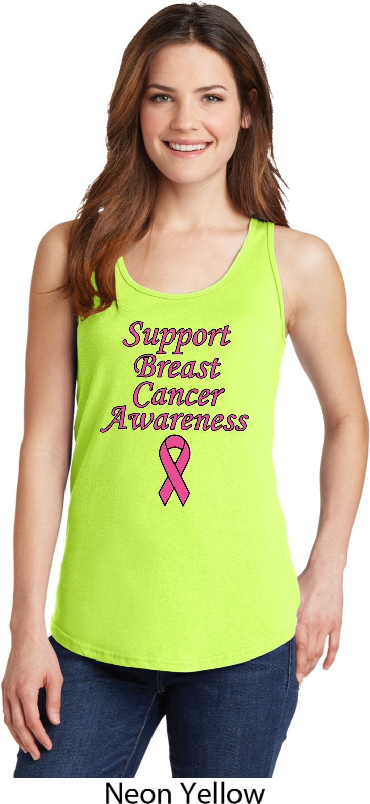 | | Support Breast Cancer Awareness Ladies Tank TopA relaxed fit ladies tanktop featuring Support Breast Cancer Awareness. Our ladies tank top is made of 100% cotton. (Neons and Heathers are made with a blend of cotton/poly) Support all fighting Breast Cancer while wearing our ladies tanktop. Available in sizes Small through 4XL. Machine wash cold with like colors; dry low heat. ![]() |