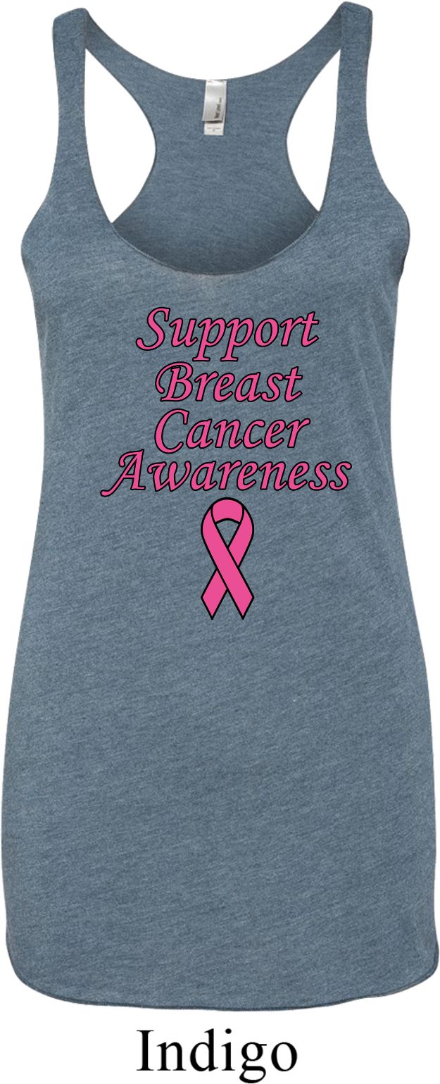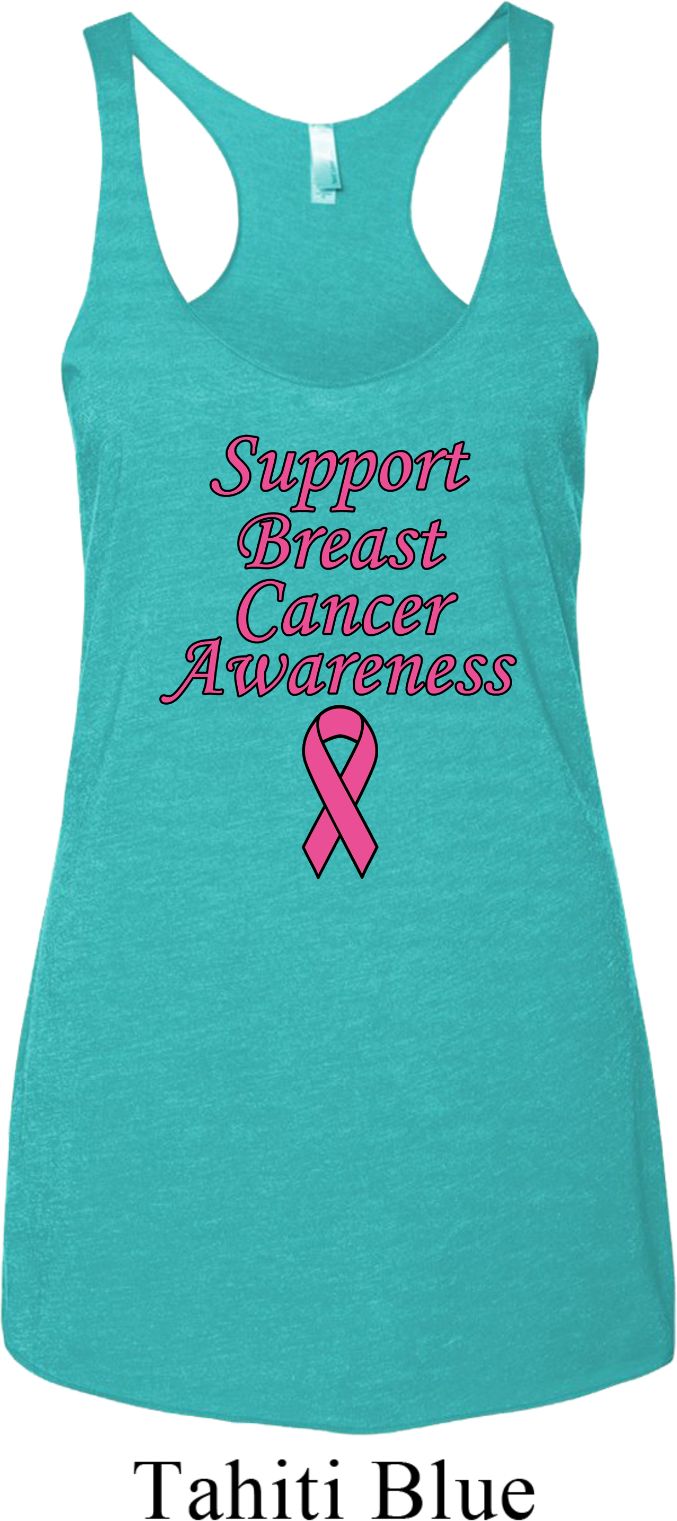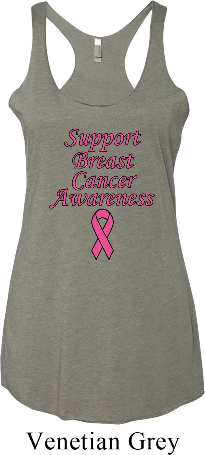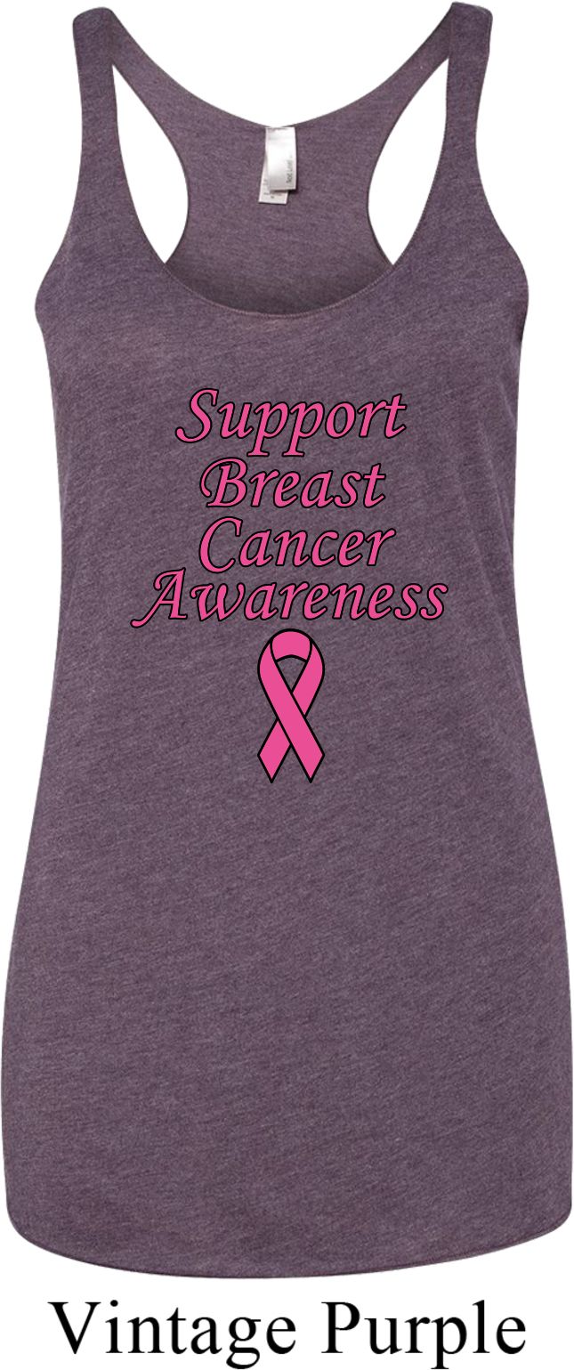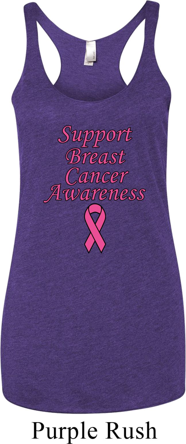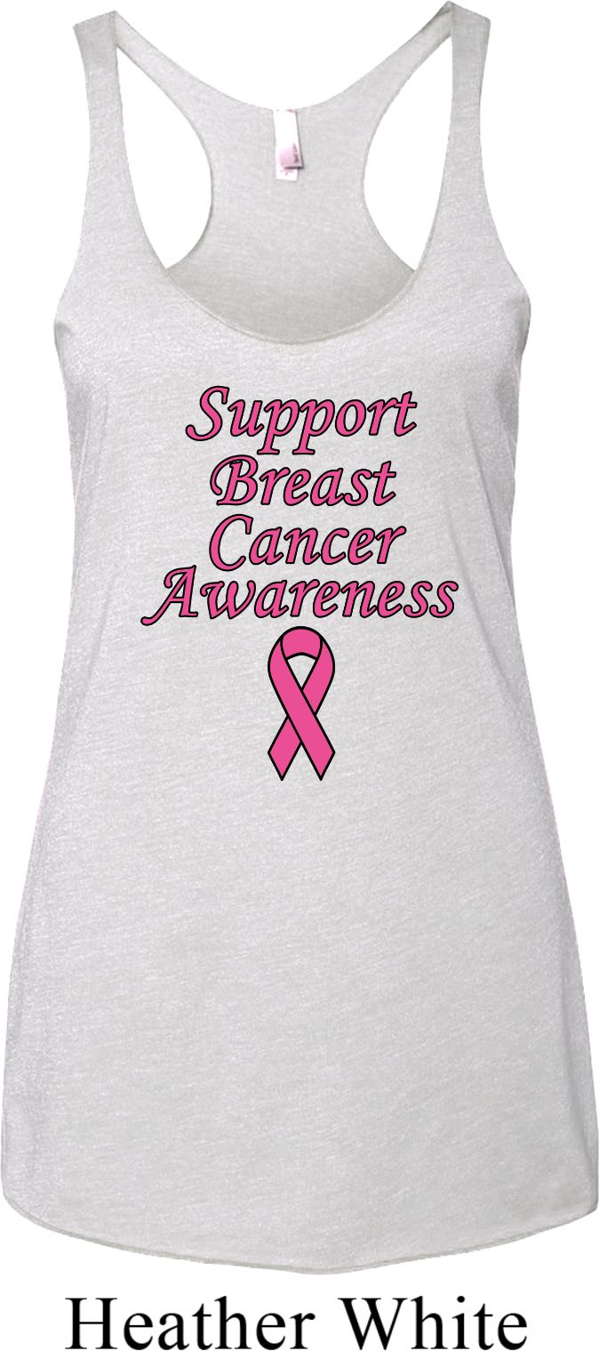 | | Support Breast Cancer Awareness Ladies Tri Blend RacerbackA ladies tri blend racerback featuring Support Breast Cancer Awareness. Our ladies tank top is made with a blend of cotton/poly/rayon. Support all fighting Breast Cancer while wearing our ladies tank top. Available in sizes X-Small through XL. Machine wash cold with like colors; dry low heat. ![]() |