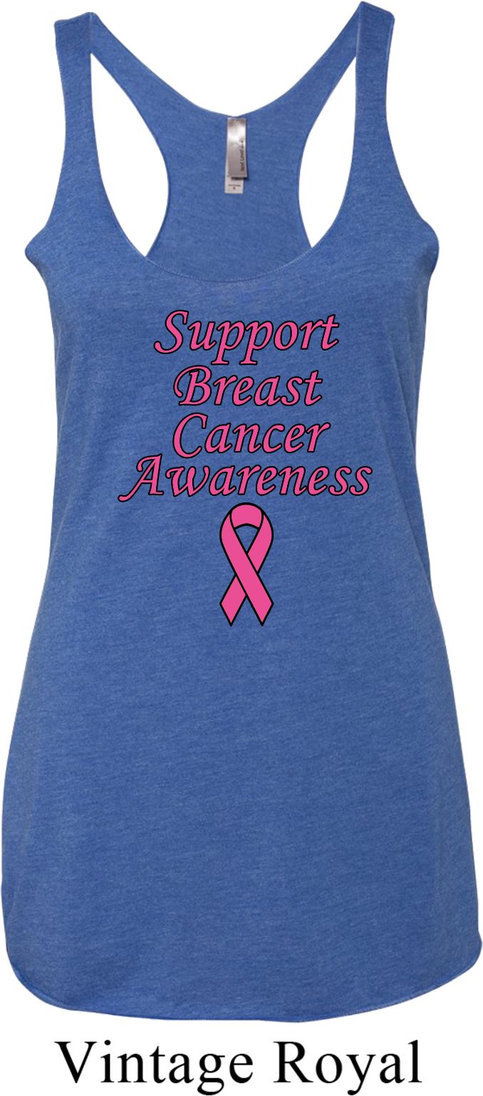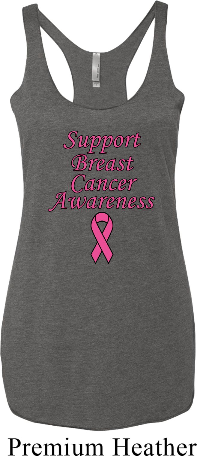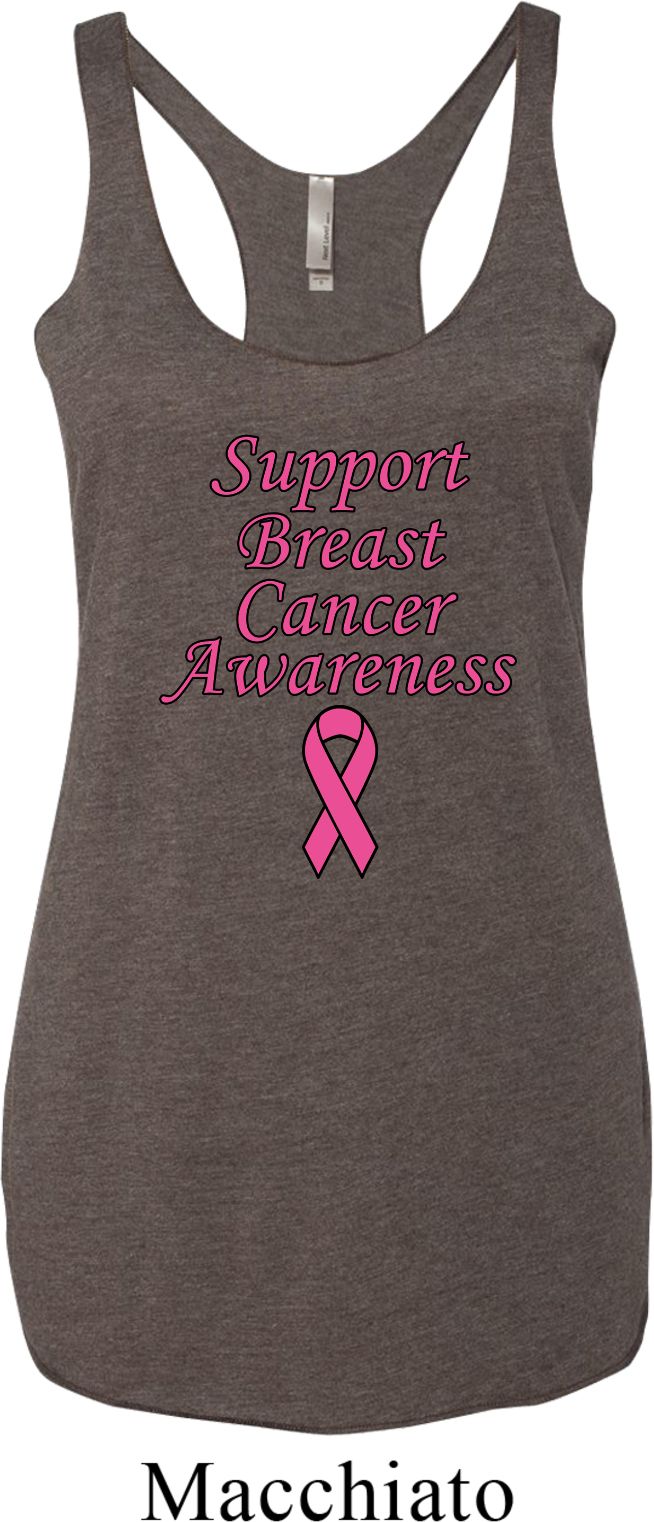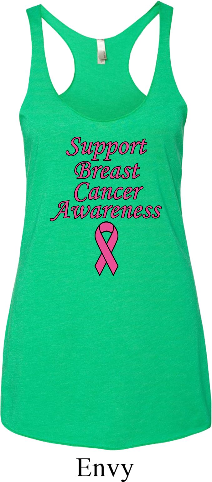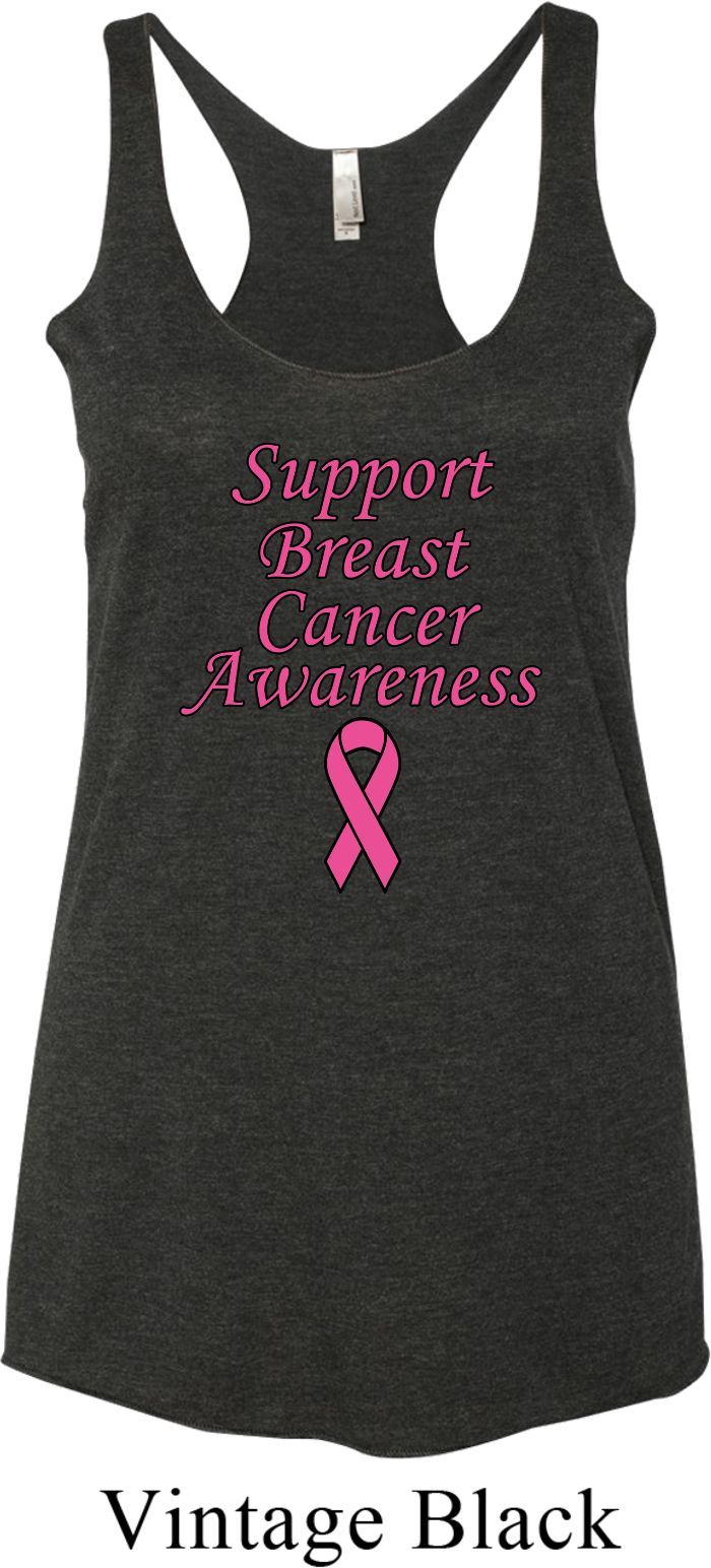 | | Support Breast Cancer Awareness Ladies Tri Blend RacerbackA ladies tri blend racerback featuring Support Breast Cancer Awareness. Our ladies tank top is made with a blend of cotton/poly/rayon. Support all fighting Breast Cancer while wearing our ladies tank top. Available in sizes X-Small through XL. Machine wash cold with like colors; dry low heat. ![]() |