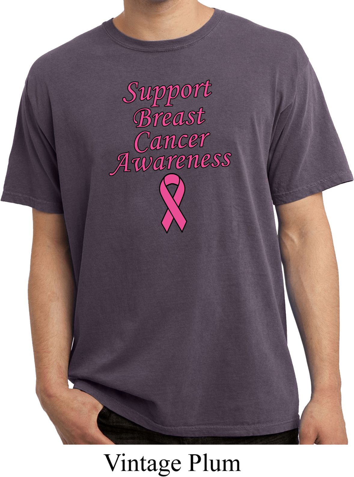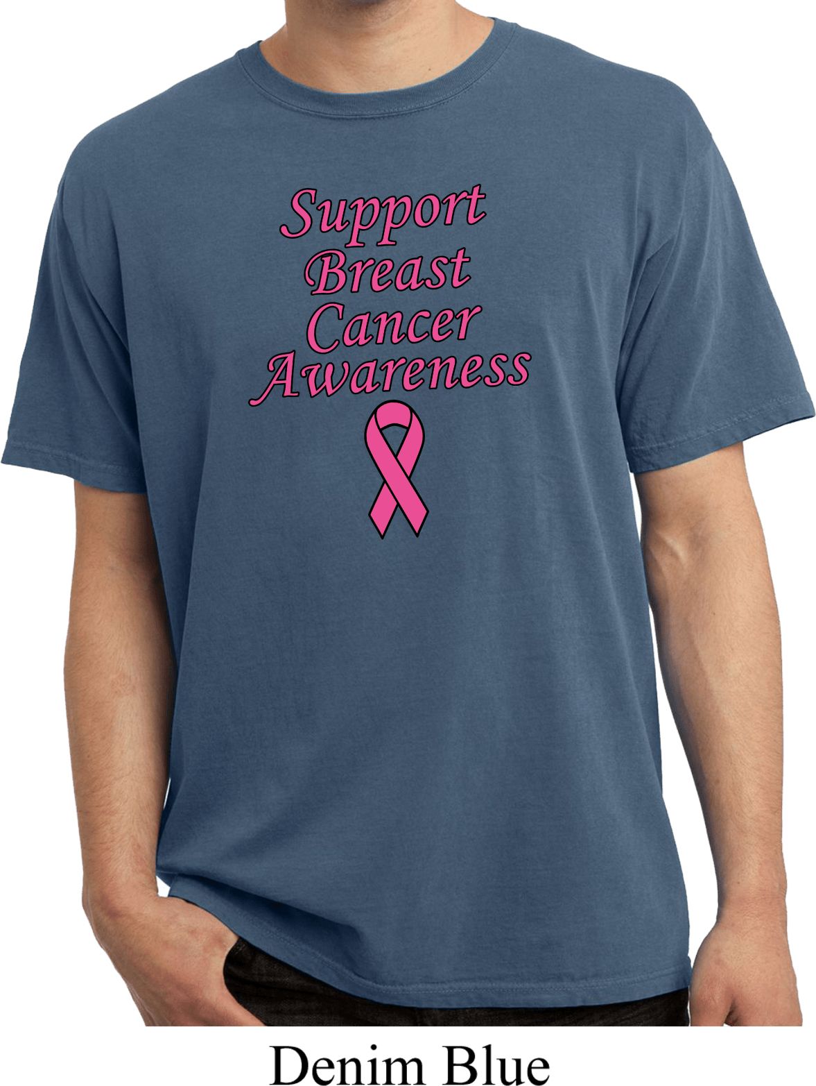 | | Support Breast Cancer Awareness Pigment Dyed T-shirtA vintage mens tee featuring Support Breast Cancer Awareness. Our mens shirt is made of 100% cotton. Support all fighting Breast Cancer while wearing our mens tee. Available in sizes Small through 4XL. Machine wash cold with like colors; dry low heat. ![]() |