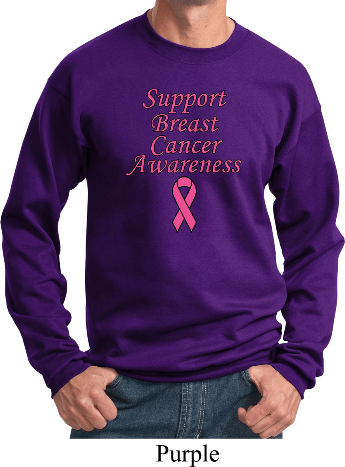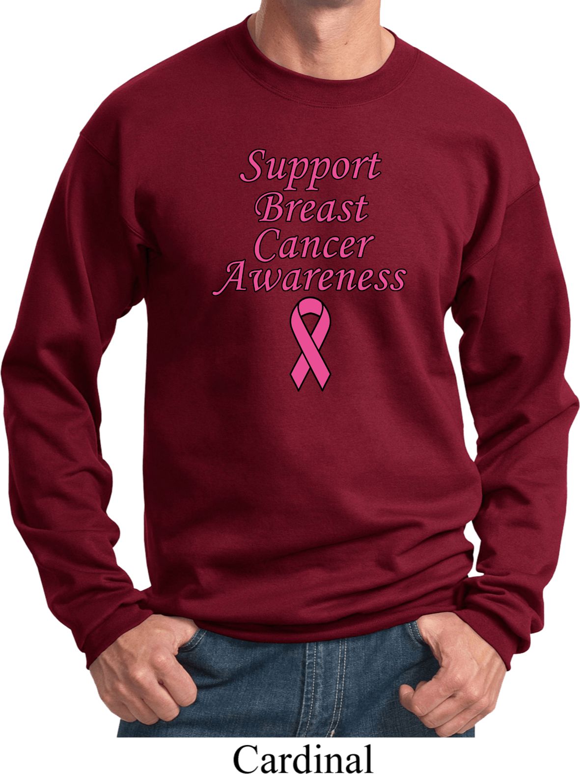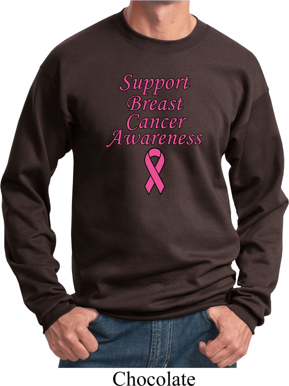 | | Support Breast Cancer Awareness SweatshirtA mens sweatshirt featuring Support Breast Cancer Awareness. Our mens sweatshirt is made with a blend of cotton/poly. Support all fighting Breast Cancer while wearing our mens sweatshirt. Available in sizes Small through 4XL. Machine wash cold with like colors; dry low heat. ![]() |