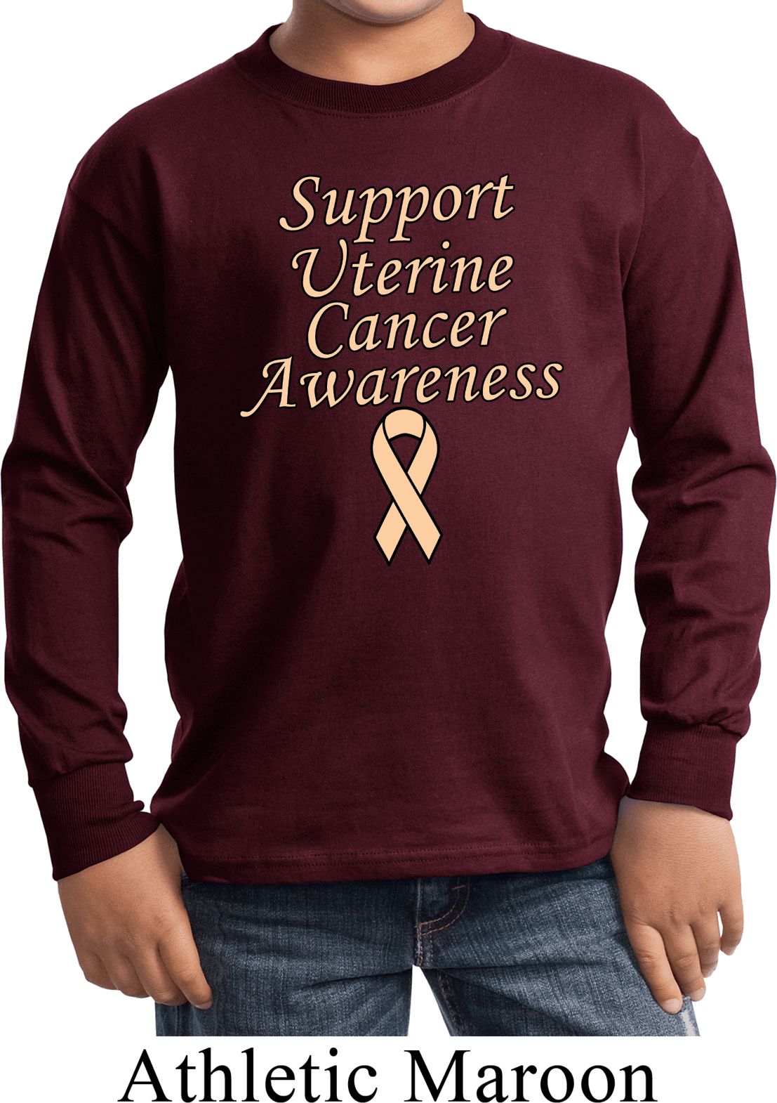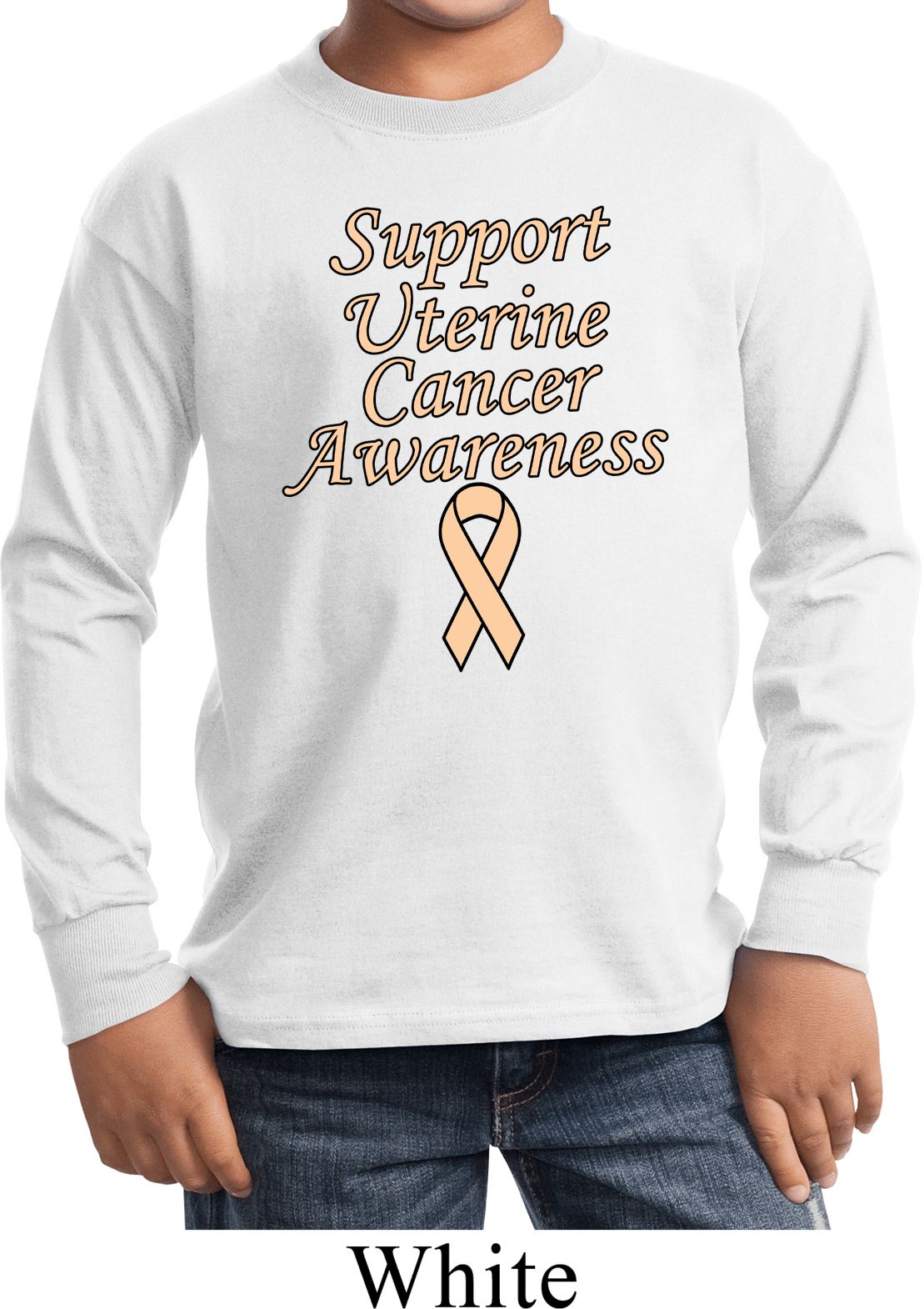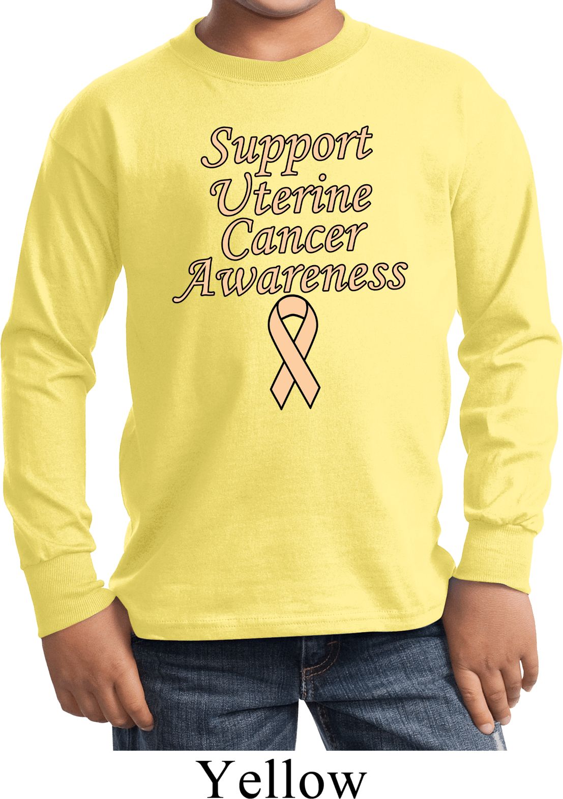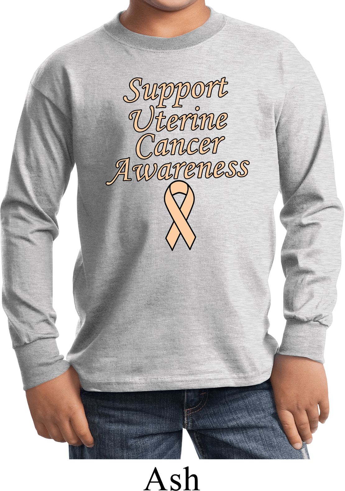 | | Support Uterine Cancer Awareness Kids Long SleeveA youth long sleeve featuring Support Uterine Cancer Awareness. Our kids shirt is made of 100% cotton. (Ash and Athletic Heather are made with a blend of cotton/poly) Support all fighting Uterine Cancer while wearing our kids shirt. Available in sizes Small through XL. Machine wash cold with like colors; dry low heat. ![]() |