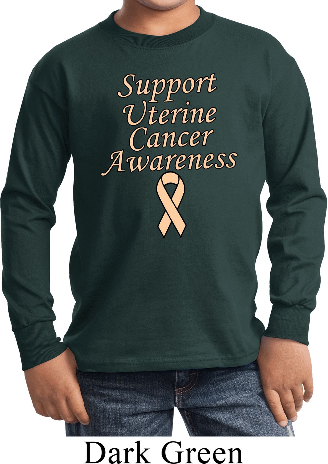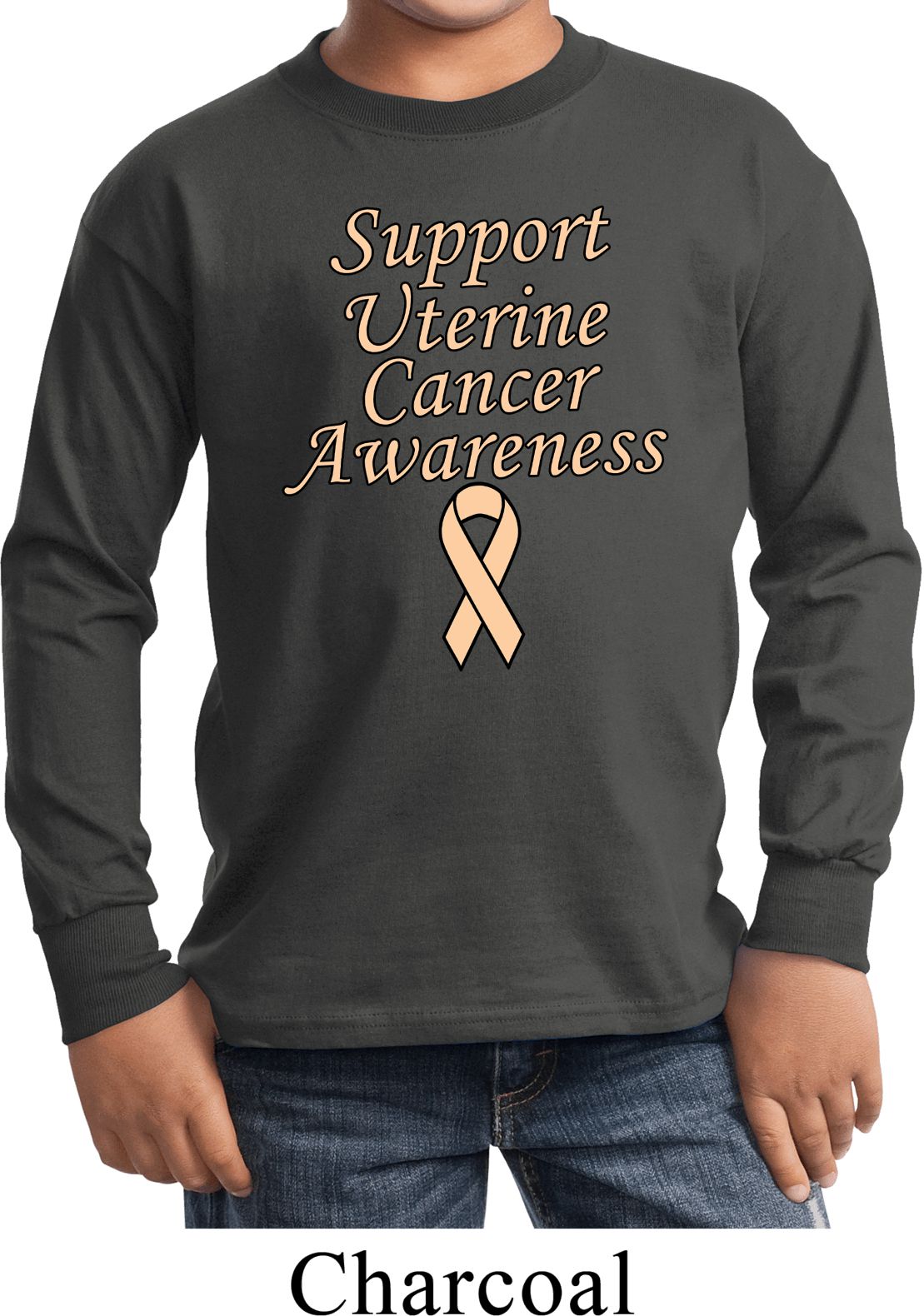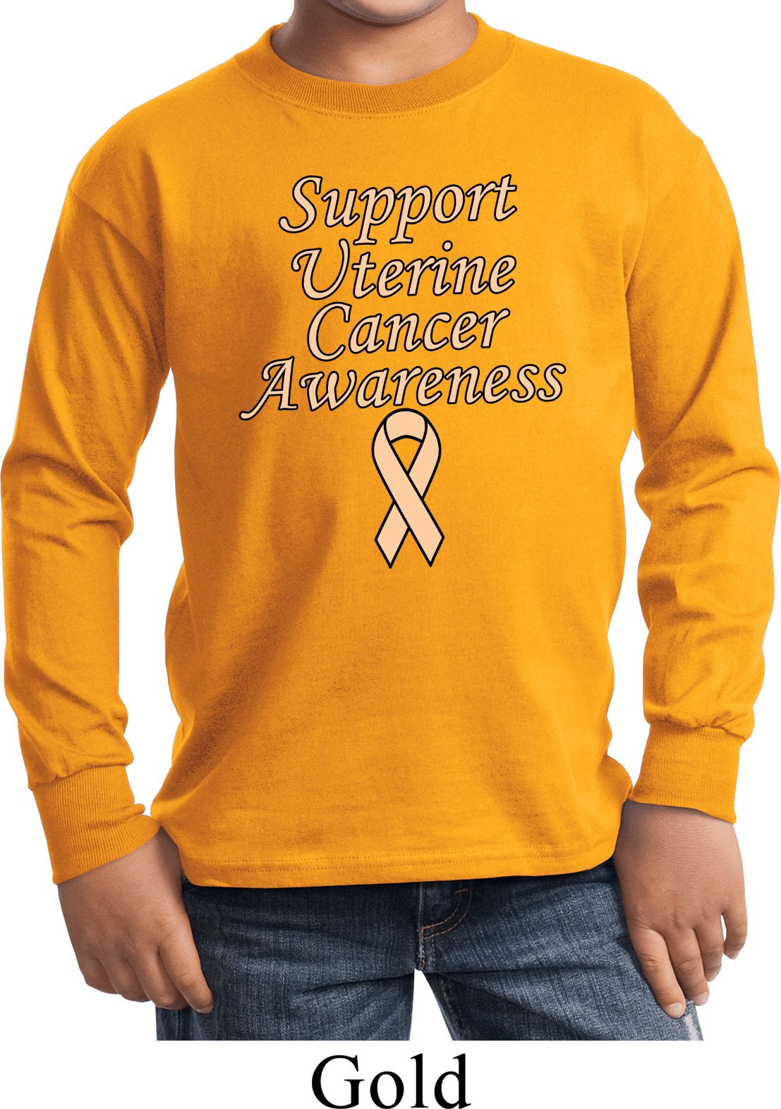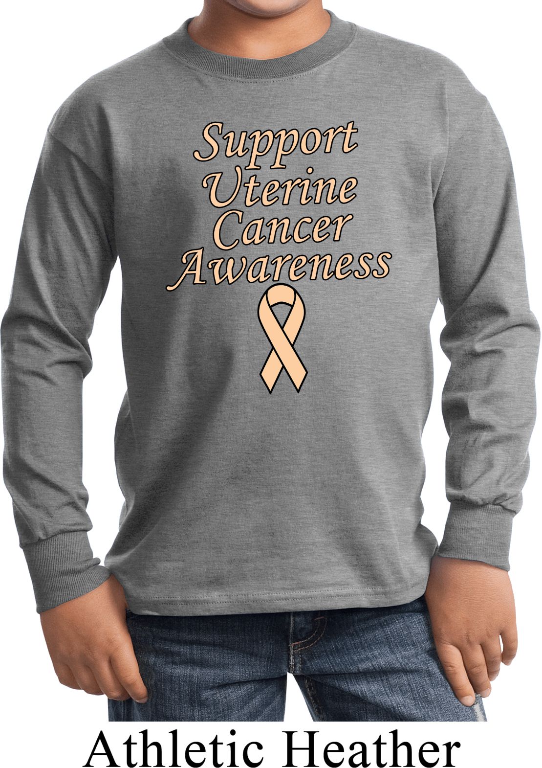 | | Support Uterine Cancer Awareness Kids Long SleeveA youth long sleeve featuring Support Uterine Cancer Awareness. Our kids shirt is made of 100% cotton. (Ash and Athletic Heather are made with a blend of cotton/poly) Support all fighting Uterine Cancer while wearing our kids shirt. Available in sizes Small through XL. Machine wash cold with like colors; dry low heat. ![]() |