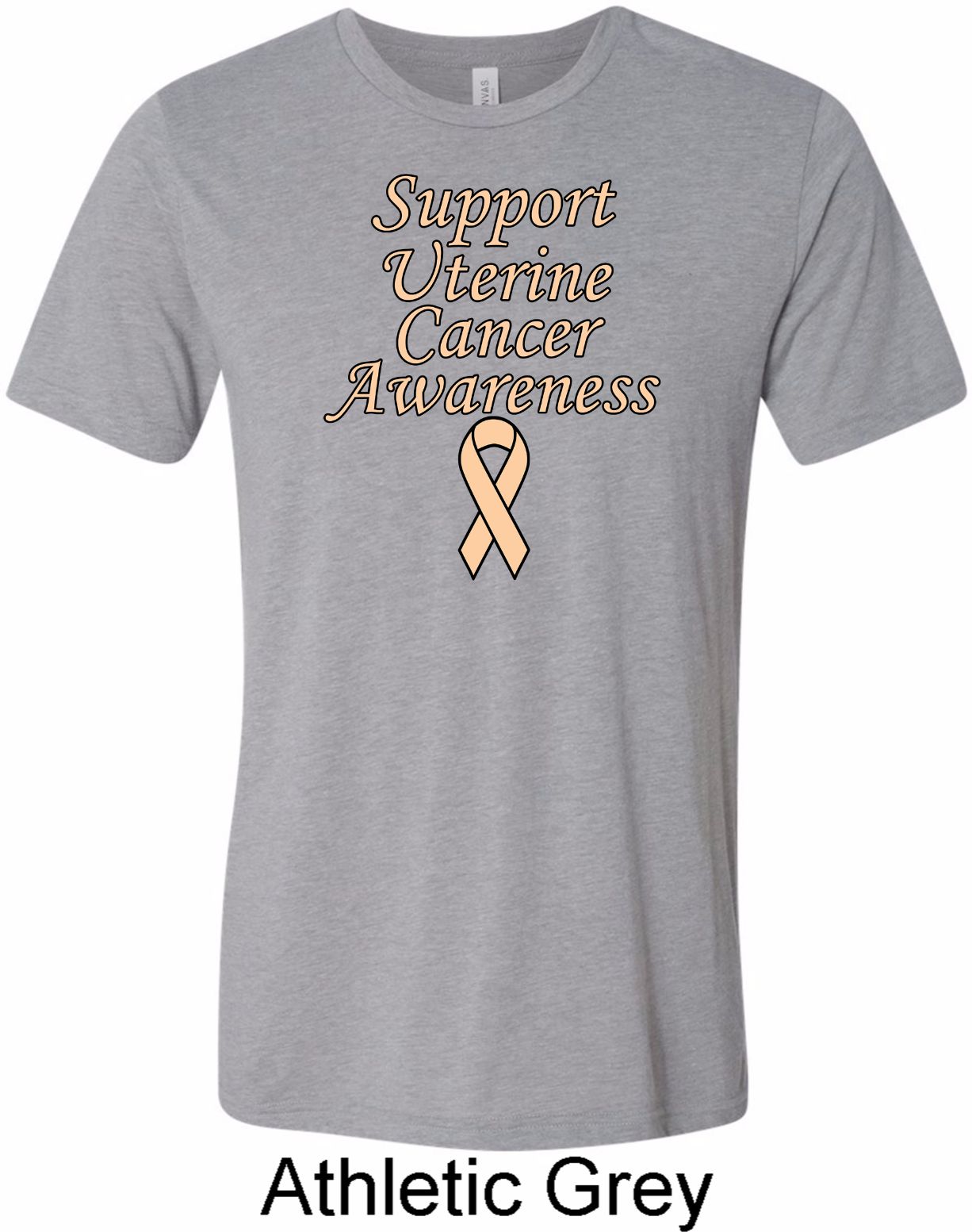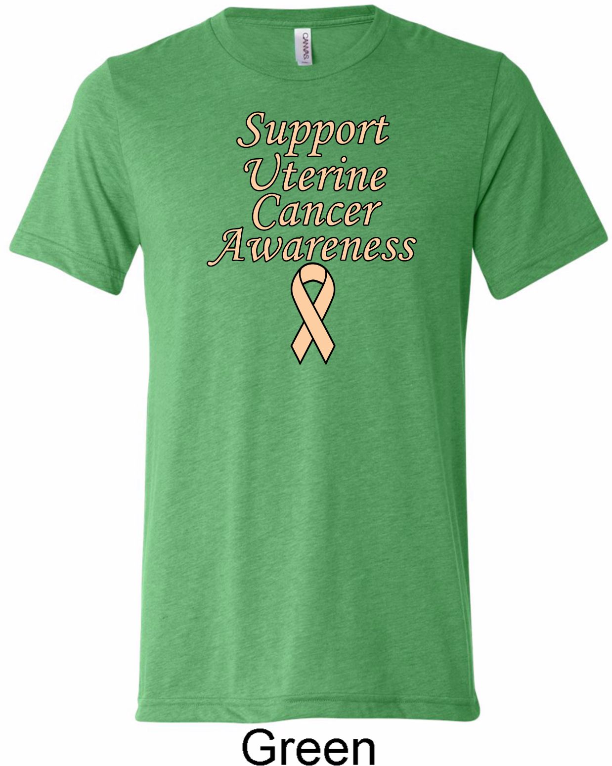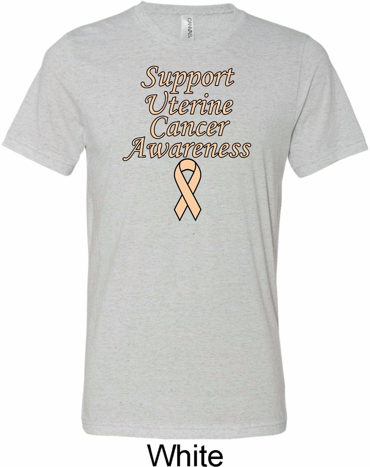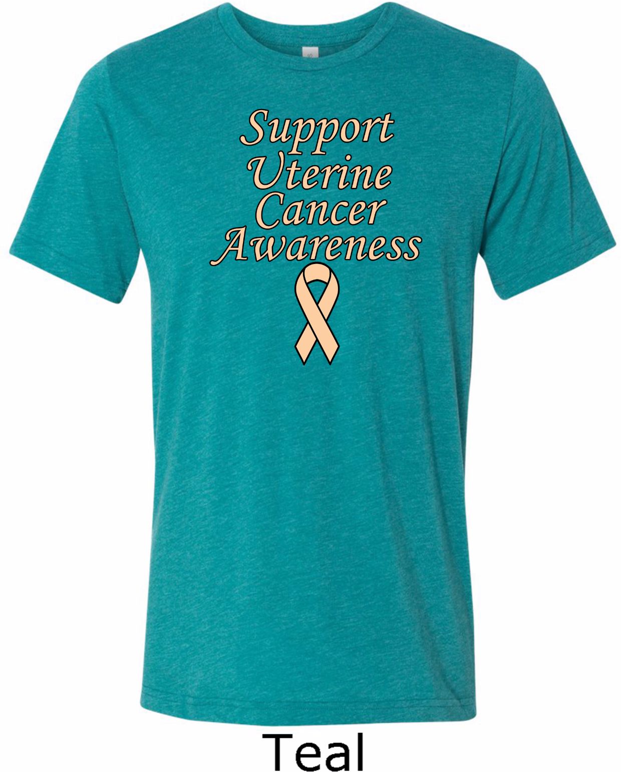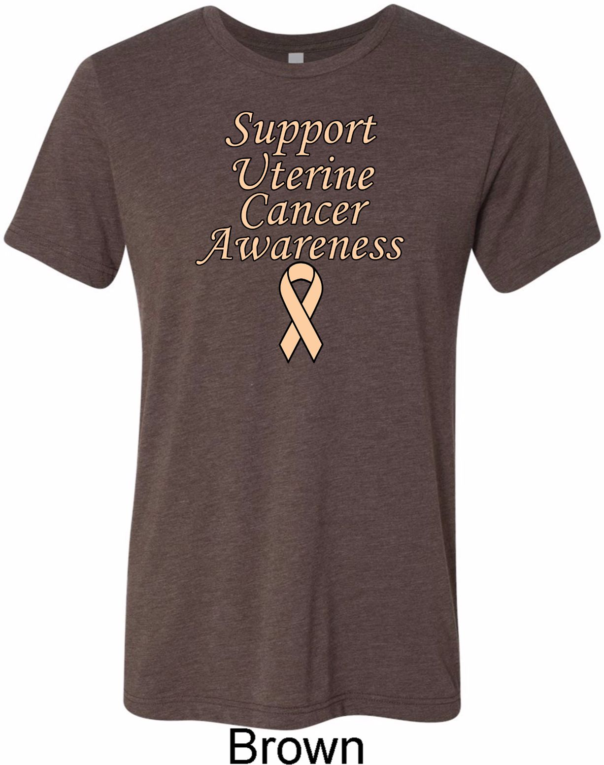 | | Support Uterine Cancer Awareness Tri Blend TeeA mens tri blend t-shirt featuring Support Uterine Cancer Awareness. Our mens tee is made with a blend of cotton/poly/rayon. Support all fighting Uterine Cancer while wearing our mens shirt. Available in sizes Small through 3XL. Machine wash cold with like colors; dry low heat. ![]() |