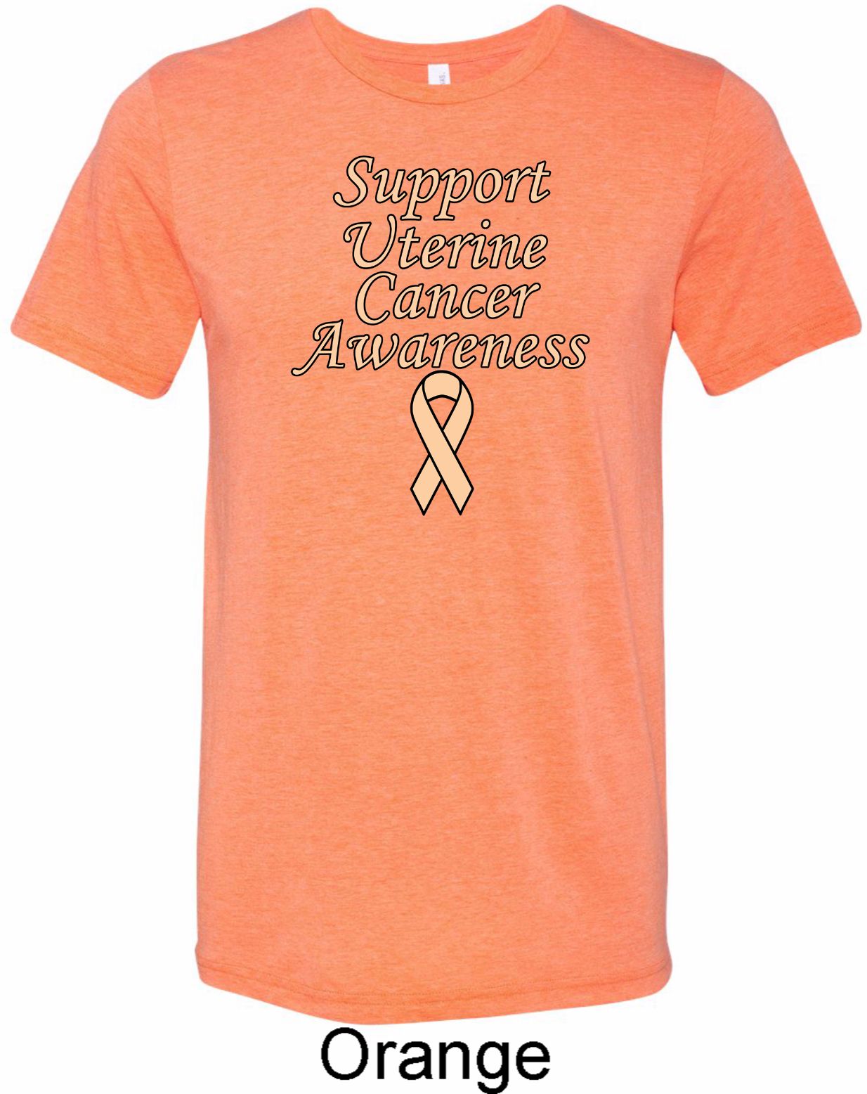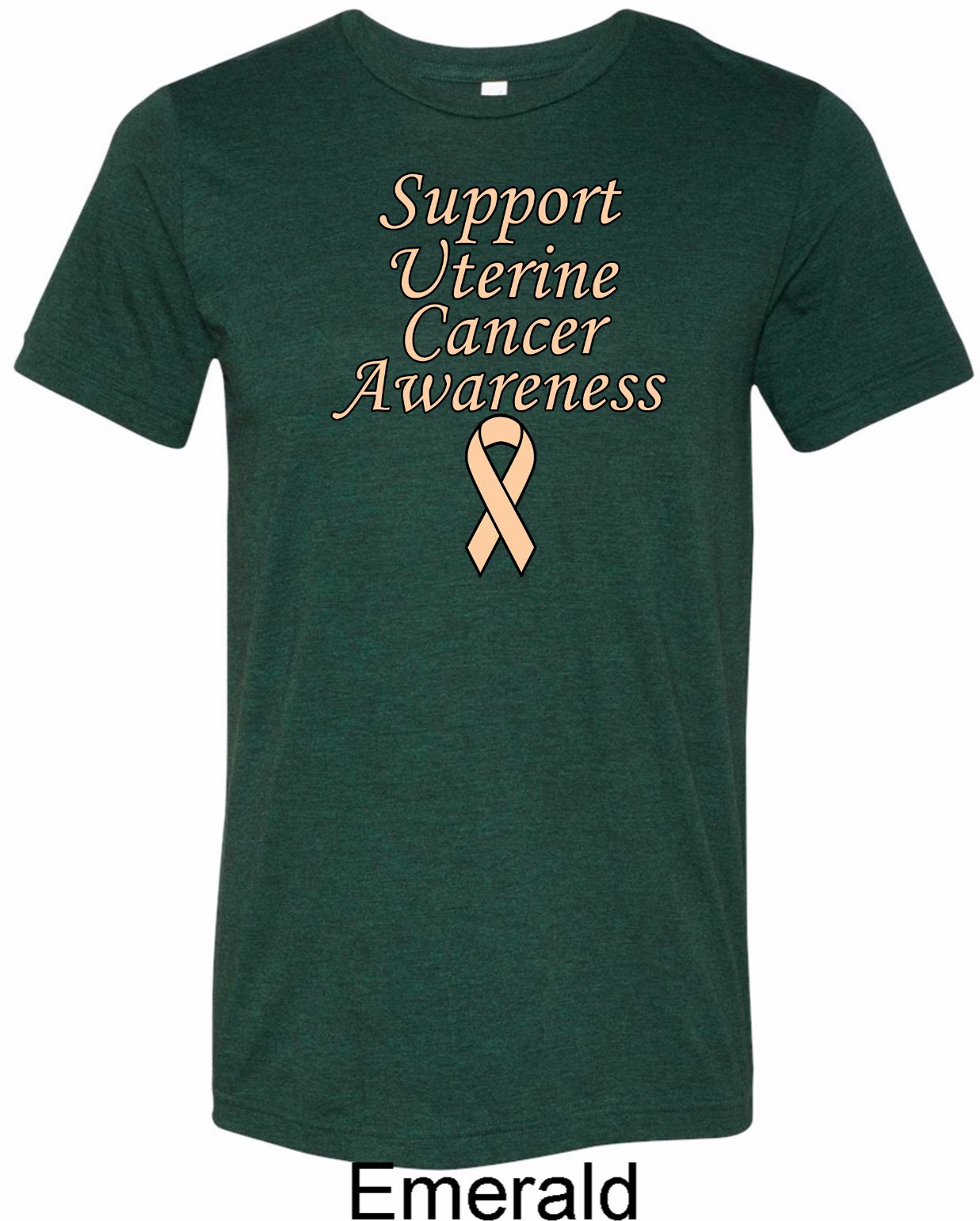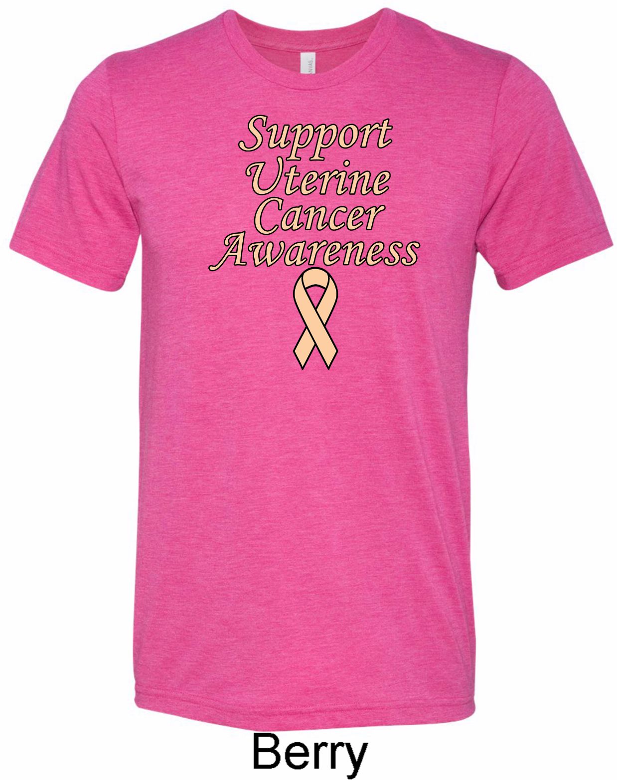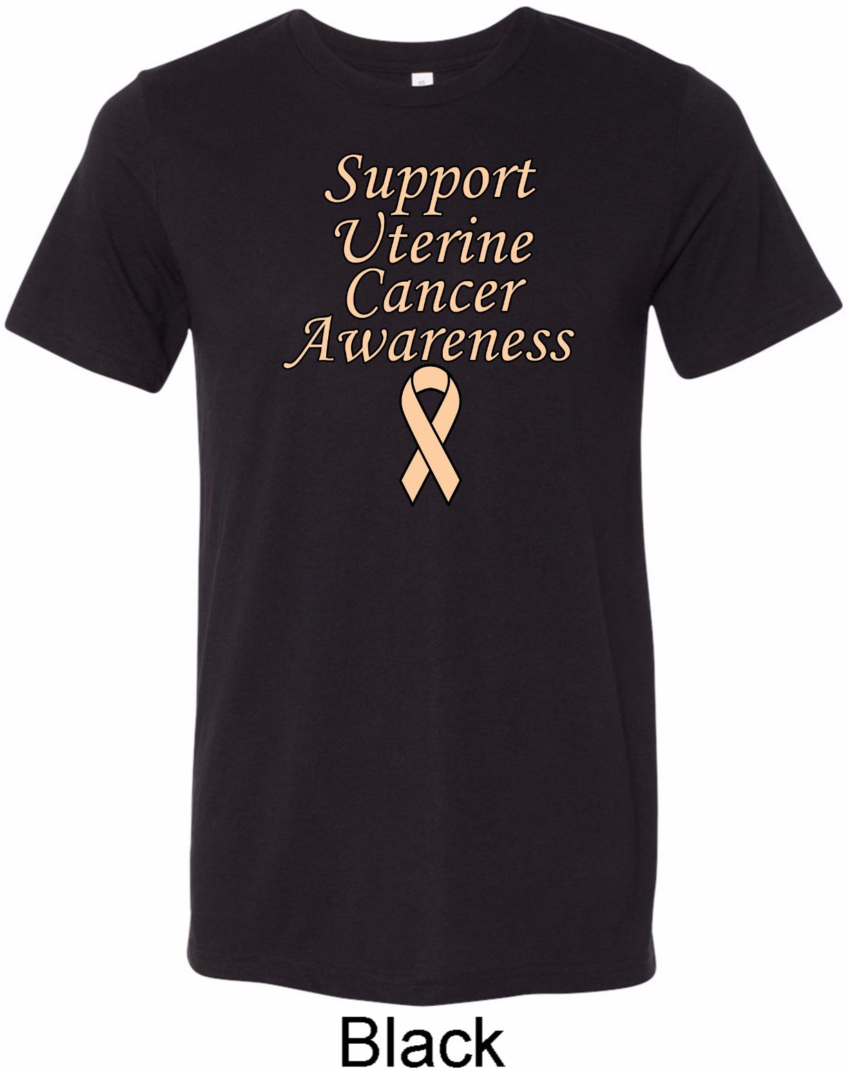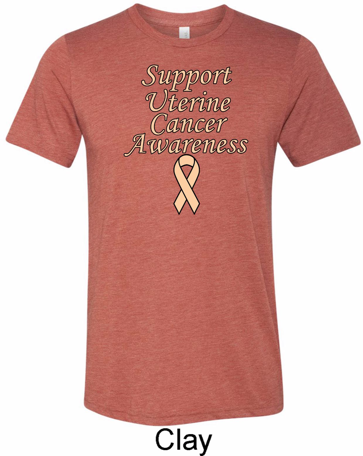 | | Support Uterine Cancer Awareness Tri Blend TeeA mens tri blend t-shirt featuring Support Uterine Cancer Awareness. Our mens tee is made with a blend of cotton/poly/rayon. Support all fighting Uterine Cancer while wearing our mens shirt. Available in sizes Small through 3XL. Machine wash cold with like colors; dry low heat. ![]() |