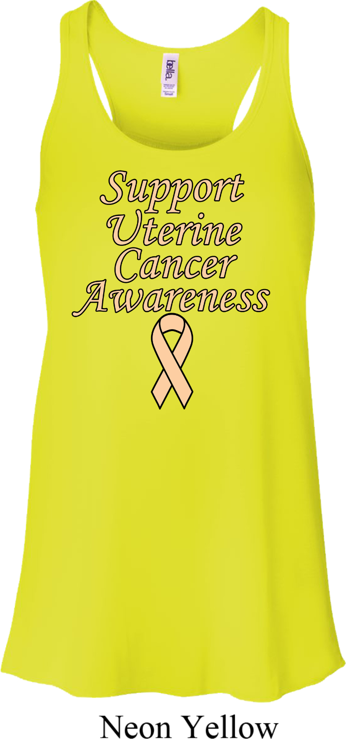 | | Support Uterine Cancer Ladies Flowy RacerbackA ladies flowy racerback featuring Support Uterine Cancer Awareness. Solid colors are made of poly/rayon; Marble colors are made of poly/cotton; Stripe colors are made of rayon/poly. Support all fighting Uterine Cancer while wearing our ladies tanktop. Available in sizes Small through 2XL. Machine wash cold with like colors; dry low heat. ![]() |